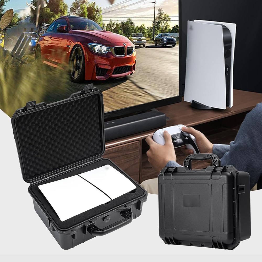 The TANKENLID Hard Shell Travel Case is specially designed and developed for Sony PS5 Slim Disc Version & PS 5 Slim Digital Edition's console and its accessories.The internal space layout is reasonable and orderly, which is an excellent solution for your quick storage and travel. The carrying case is made of high-quality PP material, which is more load-bearing, compression-resistant, impact-resistant, fall-resistant and shock-absorbing, and it can well resist the daily extrusion, even the accidental extrusion in worse environment, and fully protect your equipment. The ps5 portable case is tightly sealed and highly waterproof. After repeated sprinkling tests in the development process, it can protect your equipment from moisture. The ps5 slim travel case is easy to open and close, with high locking degree, and the lock hole position of padlock is reserved, which is safer against theft.(Note: this product does not include locks, which need to be purchased separately by customers)