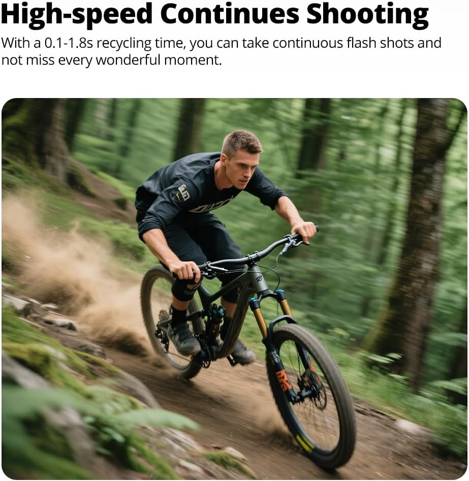 【Adjustable Flash Head】 You could enjoy the creative freedom and adjust the camera flash head 's 0-270-degree horizontal rotation and 0-90-degree vertical tilt,enabling you to shot more stunning photos from diverse lighting angles.And this flash adopts fresnel lens with strong focus.
