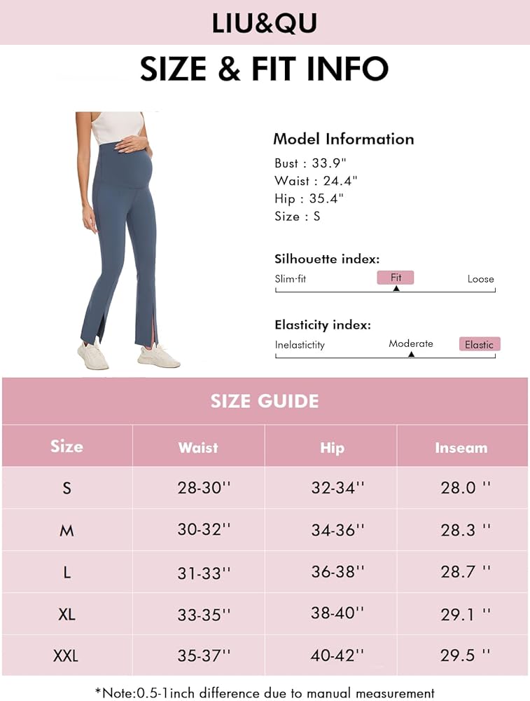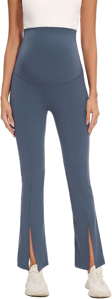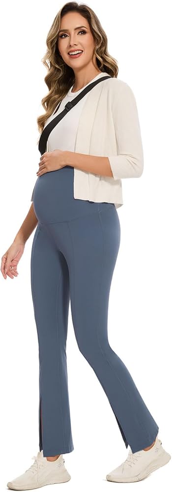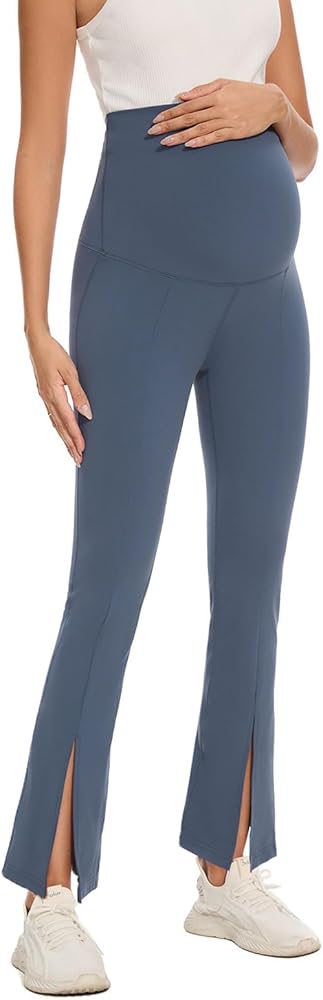 【Stylish Flare & Split Leg Design】maternity yoga pants feature a trendy flare and split front design. Not only does it showcase your style and individuality, but also allows unrestricted leg movement for utmost comfort and flexibility during your activities.
