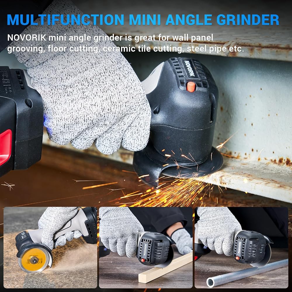 Cordless Design: the NOVORIK cordless design angle grinder tool, which makes it more convenient for you to use, the cordless design mini angle grinder eliminates the hassle of tangled cables, easy to carry, can be used indoors and outdoors.