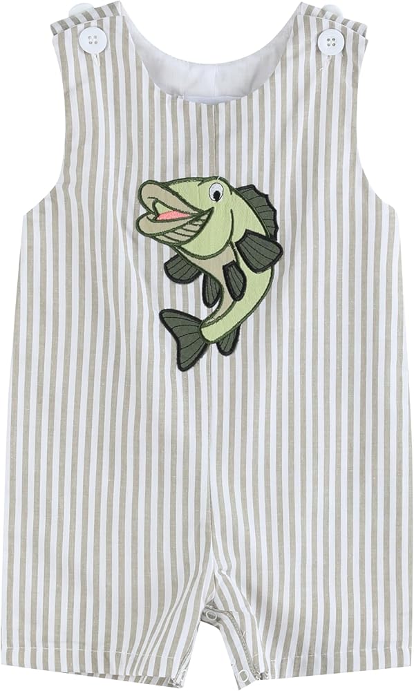 Lil Cactus Favorite - Snappiest Shortall! Tradition and trend make perfect playmates in this classic boy's warm-weather romper. Lightweight cotton in traditional patterns means he'll stay cool and comfortable even on the most adventurous of playdates! Whimsical embroidery and smocking brings a fun modern style to this traditional playsuit. Make sure your little guy is ready for the treehouse or the clubhouse this season.
