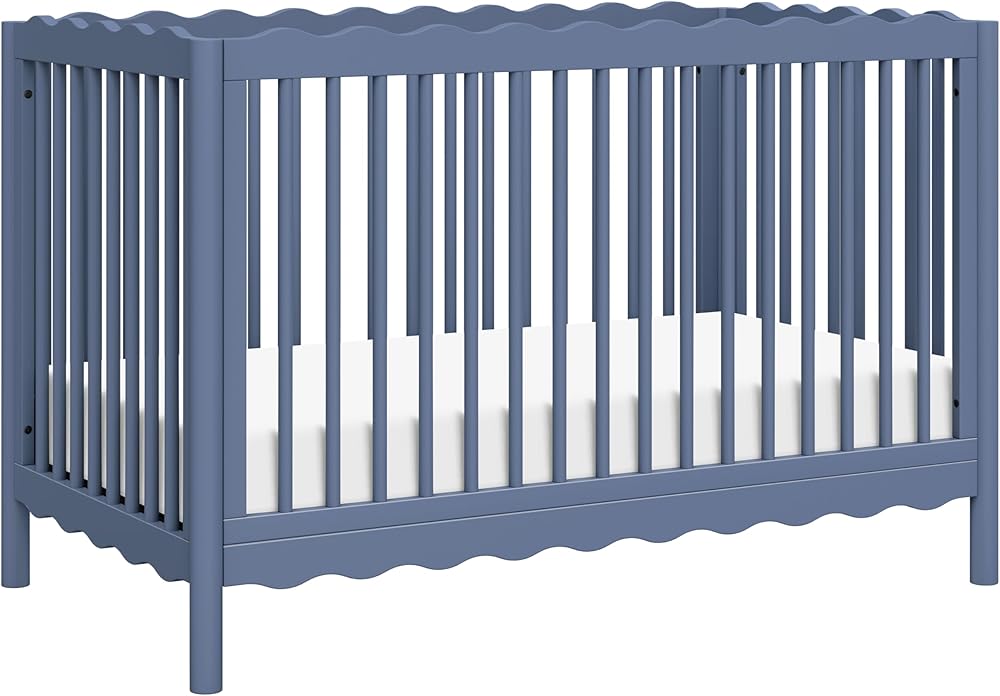 PLAYFUL PERSONALITY: Ocean-inspired design with rounded posts, spindles, and wavy edges. The low profile and 4 adjustable mattress positions help with a growing babe. Complete your look with the Swell Changing Table.