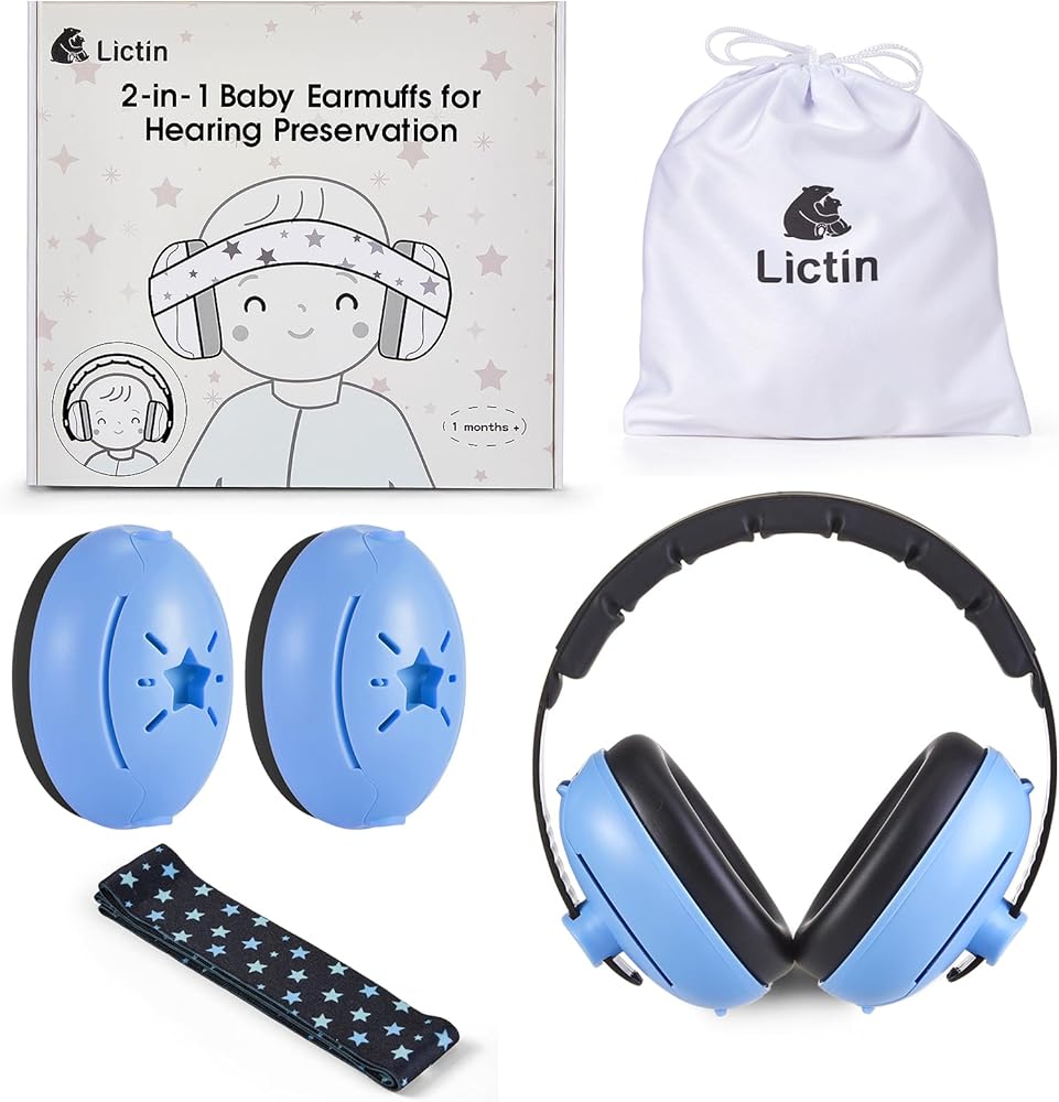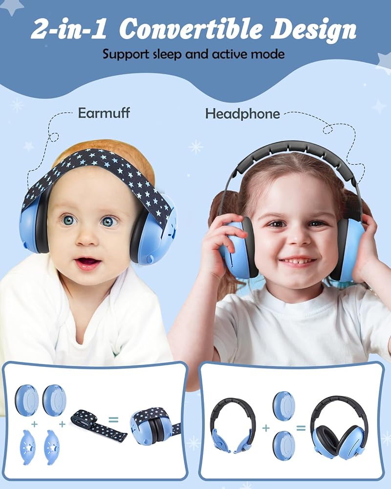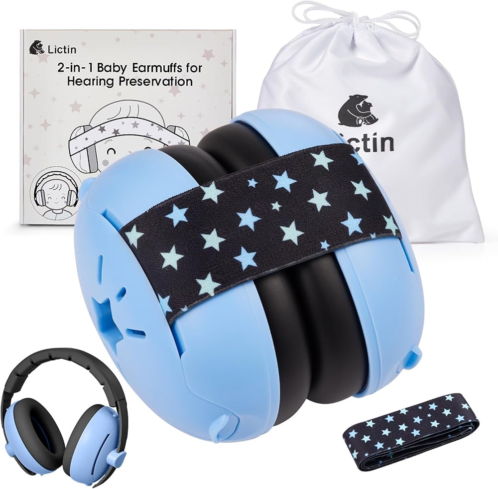 Lictin 2-in-1 Baby Earmuffs Noise Protection, Infant Noise Cancelling Headphones, Adjustable Baby Ear Protection, Star Noise Reduction Earmuffs for Babies and Toddlers up to 4 Years