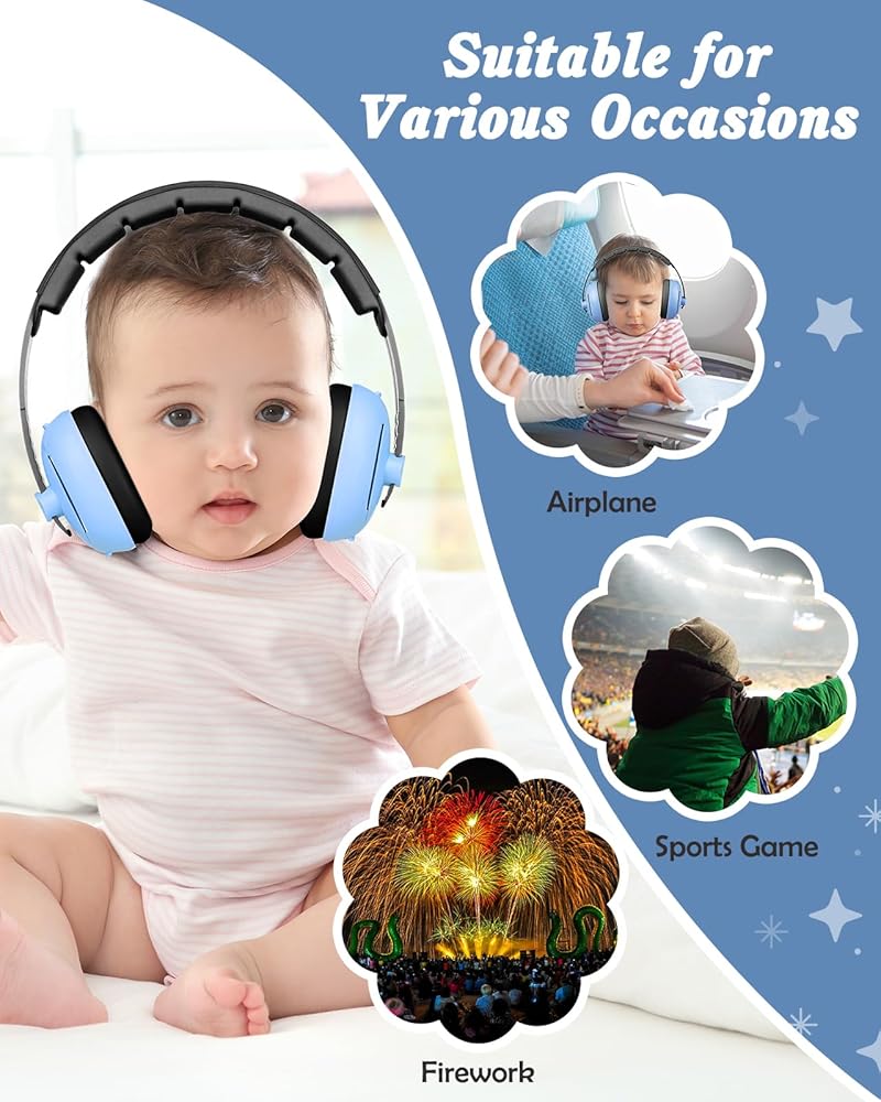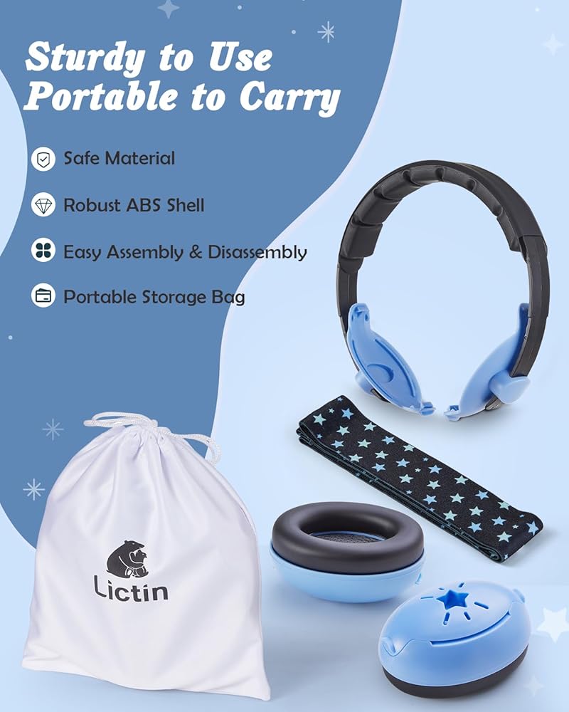 Efficient Hearing Protection: Lictin baby ear muffs noise cancelling feature a superior noise reduction rating of 25 dB, effectively protect your child's sensitive ears from damage, Perfect for diverse environments like airplanes, trains, concerts, and parties to allow your baby to sleep peacefully even during the journey