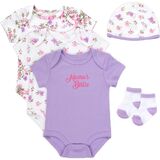 MIX & MATCH THE LOOKS AROUND: The cap and little pair of ankle bootie socks included go great with all of the (3) bodysuits included, no matter which pairing you choose!