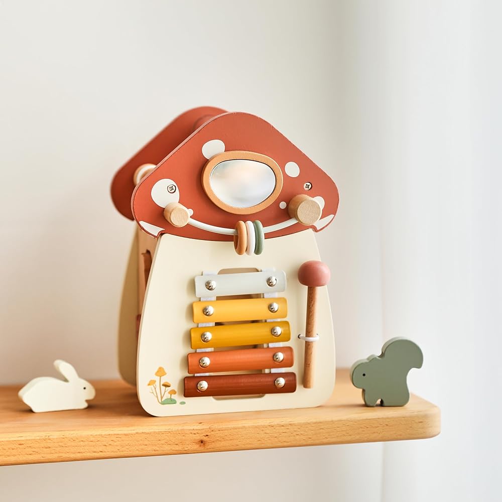 ibwaae 5 in 1 Wooden Activity Cube Play Center Bead Maze Leaves Shape Sorter Learning Montessori Toys for Toddlers 1-3 Early Educational Developmental Learning Toys for Kids