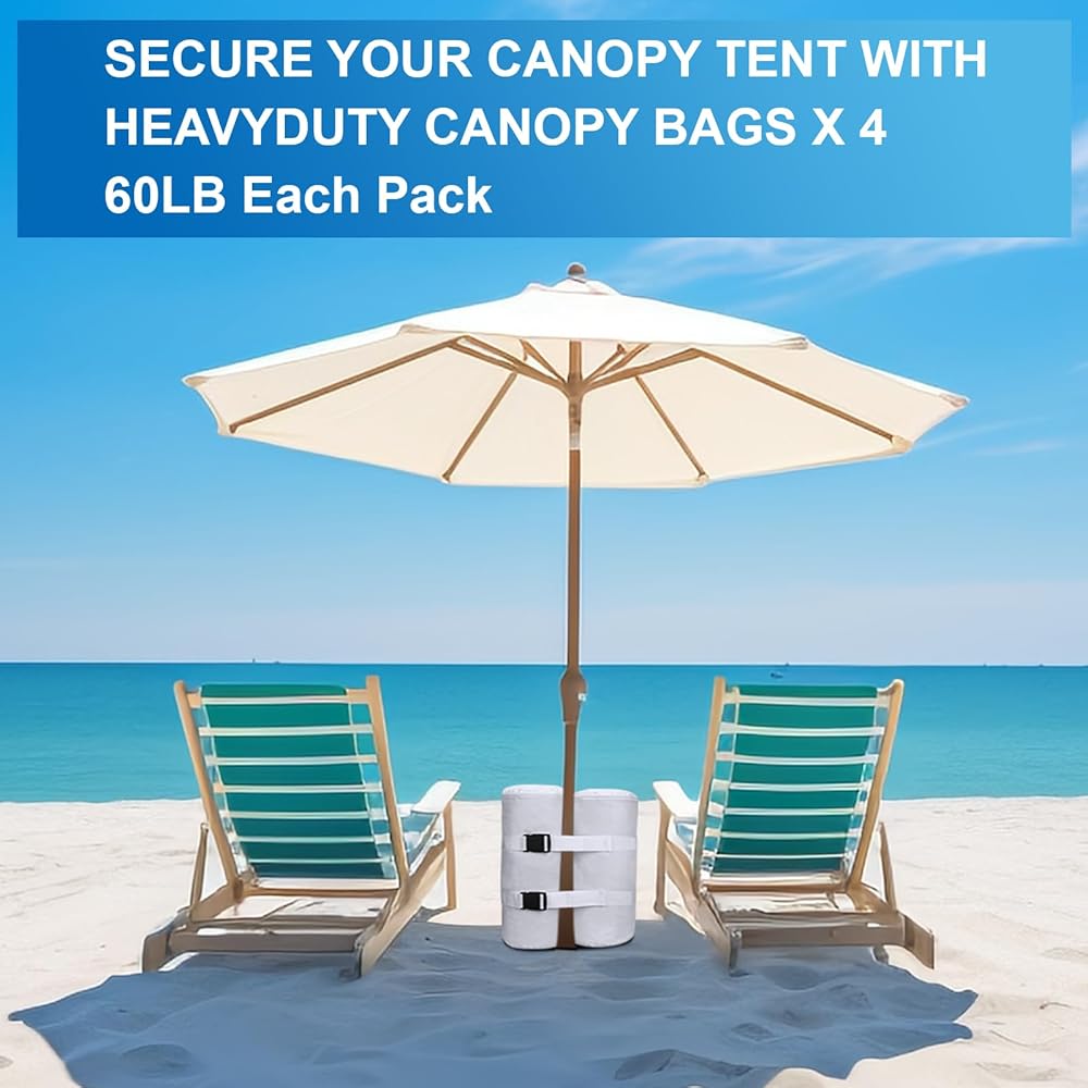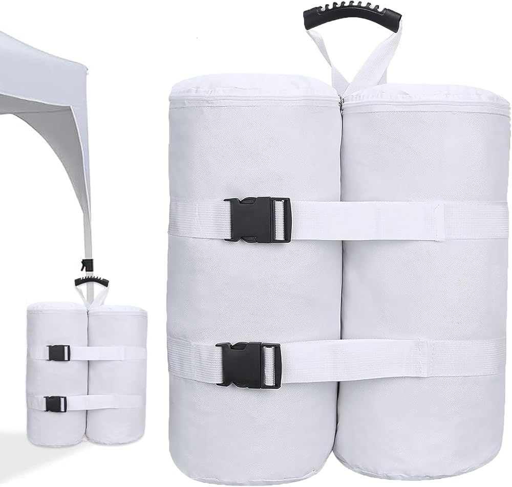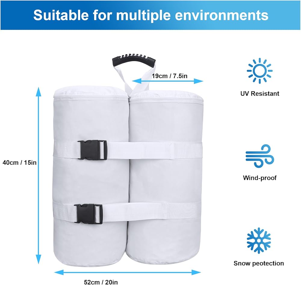 【Easy To Use】Sand bags equipped with a carrying handle and 4 velcro buckles, it's quick and easy to fill the large opening at the top with sand and then simply attach the buckles to the canopy legs.