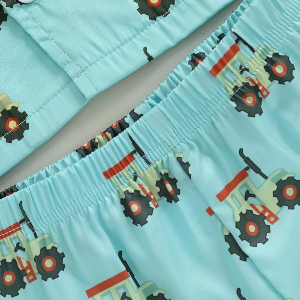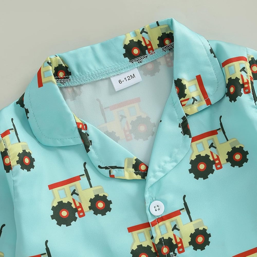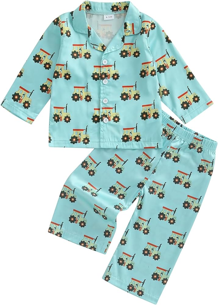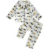 Biayxms Toddler Boy Silk Pajamas Set Button Down Dinasour Long Sleeve Shirts Tops and Pants Two Piece Satin Pj Lounge Sets
