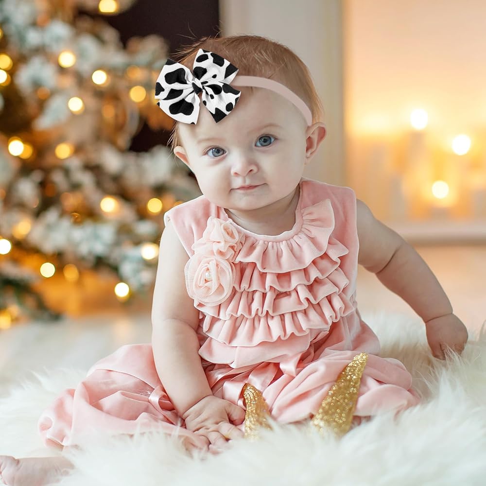 NKM 4Pcs Cow Print Cowgirl Bow Headband, Cow Print Hair Bow Clips for Cowgirl Baby Girls Costume Hair Accessories