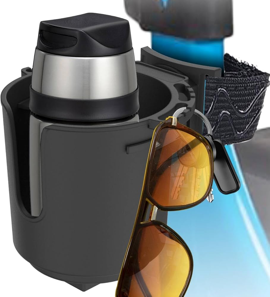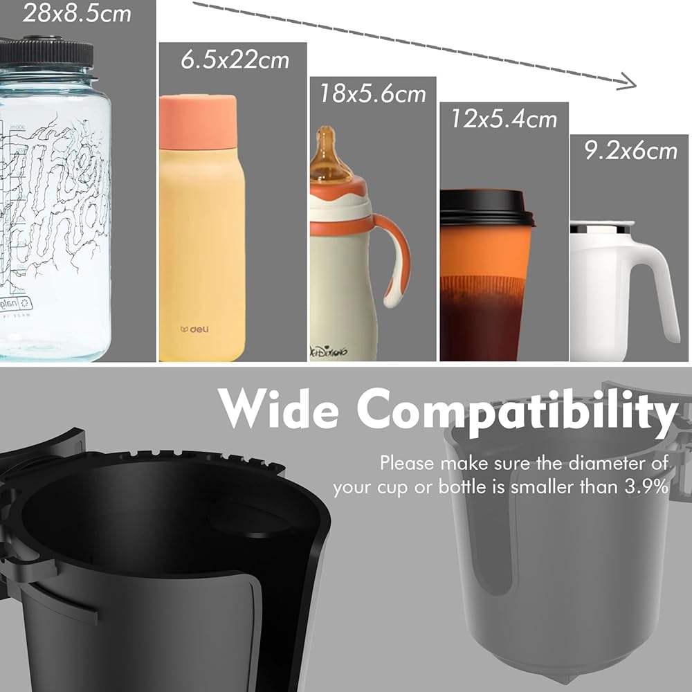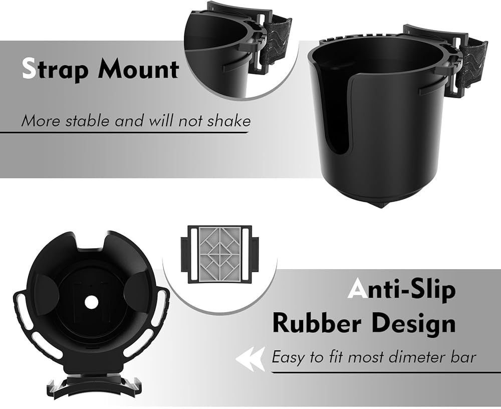 Wheelchair Cup Holder with Multi-Angle Adjustment and Multi-Function Bracket, Designed Cup Holder for Bottle with Handle, Cup Holder for Rollator, Stroller, Camper, Golf cart (Black, Large)