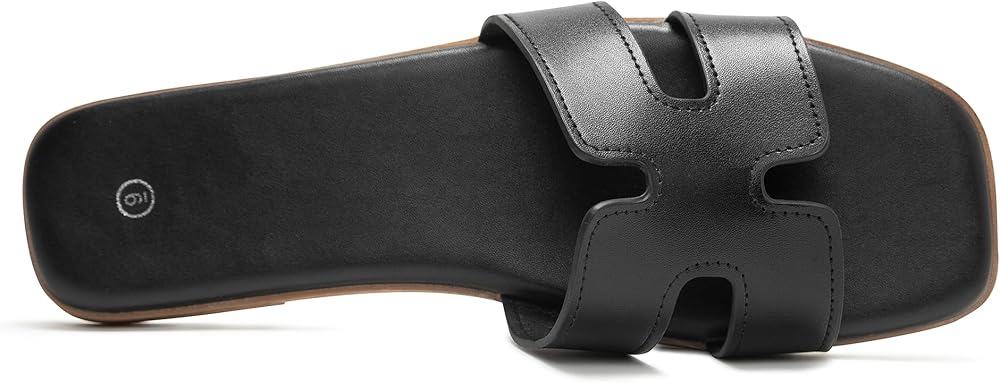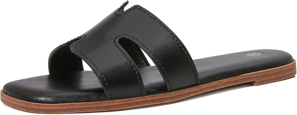 Women's Slide Sandals Comfortable Flat Slip On Leather Sandals