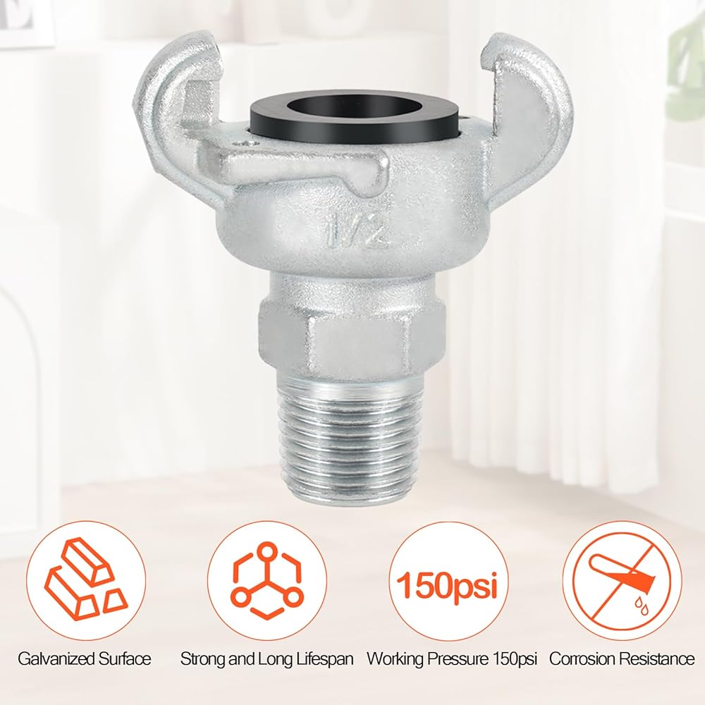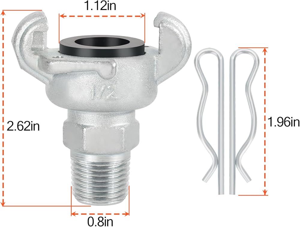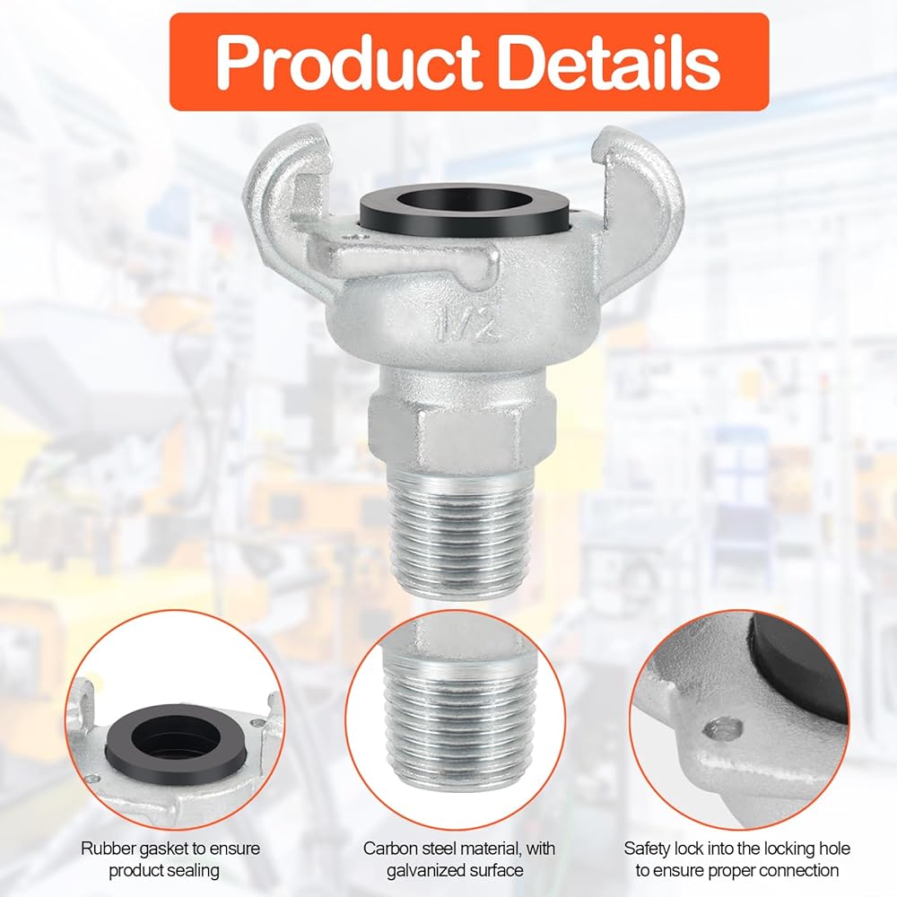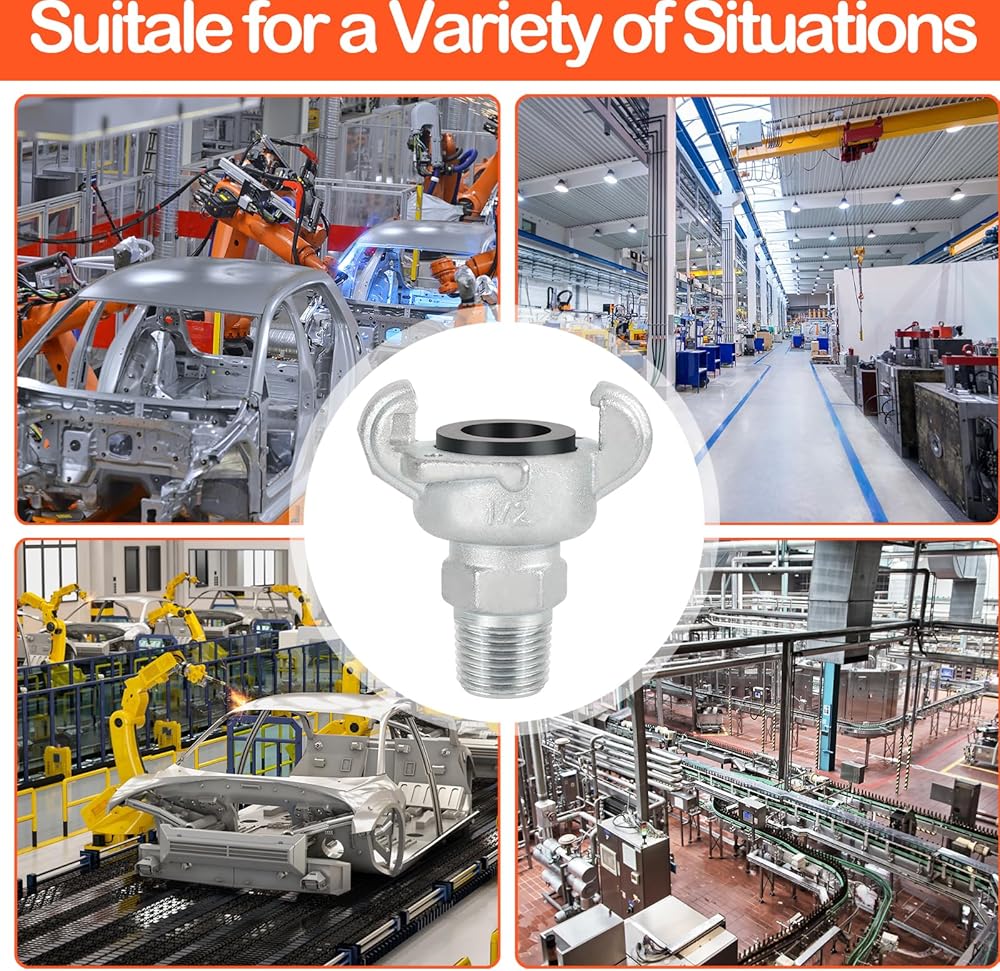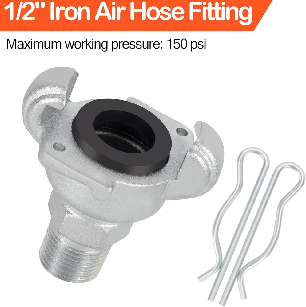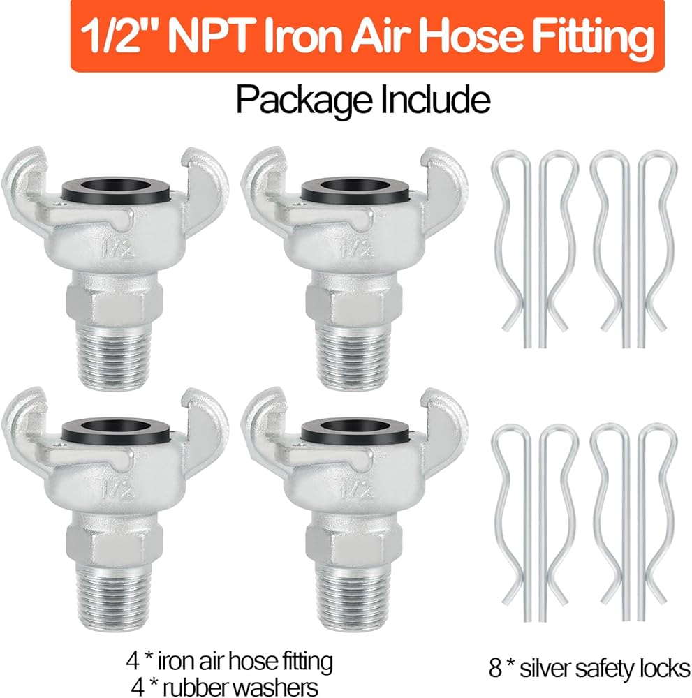 Value Package: What will you receive include 4 iron air hose fitting in 1/2", 8 silver safety locks and 4 rubber washers, enough quality for your daily use