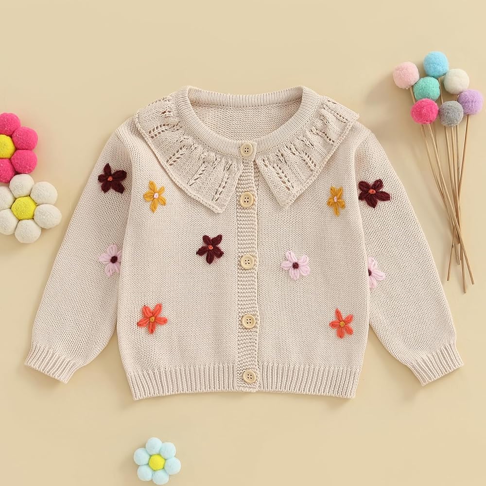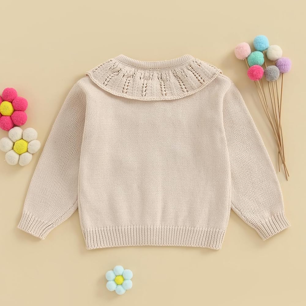 Girls Autumn Knit Sweater Long Sleeve Solid Color Button Up Cardigan Knitwear Coat