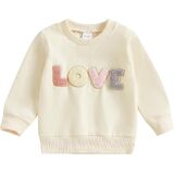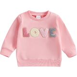 Kids Girls Sweatshirt, Long Sleeve Crew Neck Embroidery Letters Pullover Hoodie Valentines Day Tops