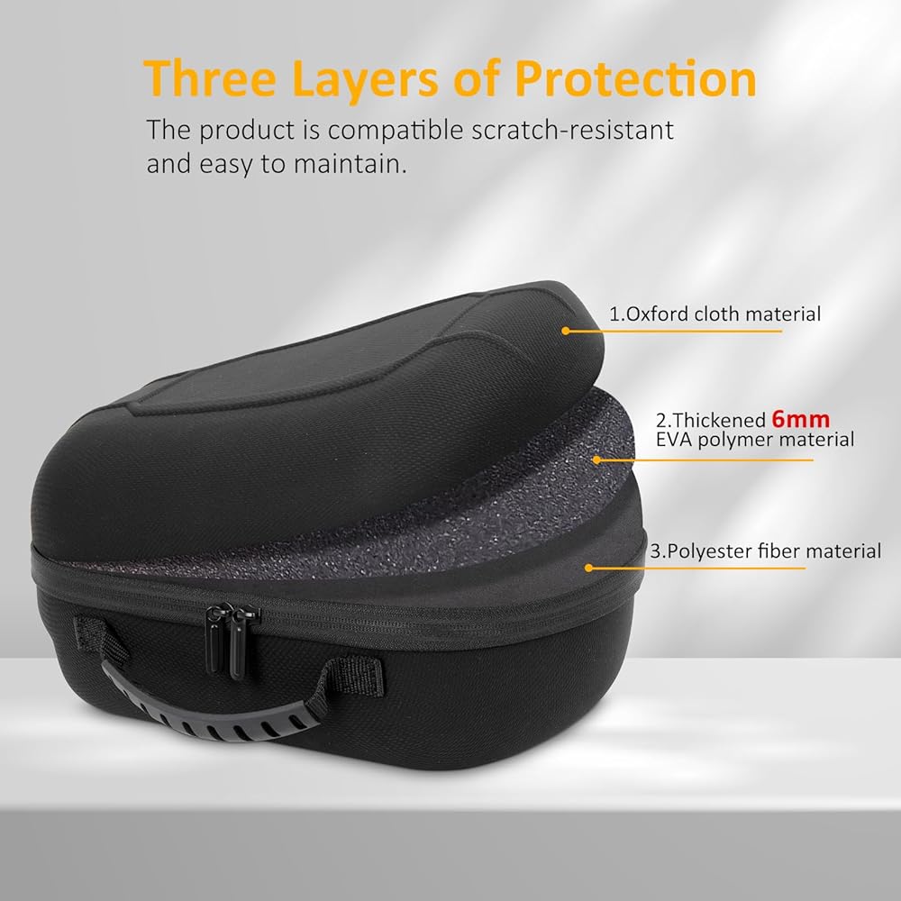 【Blend of Style and Function】Designed specifically for Meta/Oculus Quest 3 3S/ Oculus Quest 2, the Wonlince Hard Carrying Case is made from higher quality materials ,Hollowed out design on the bottom of the helmet allows the helmet to dissipate heat and Sweat Taste quickly
