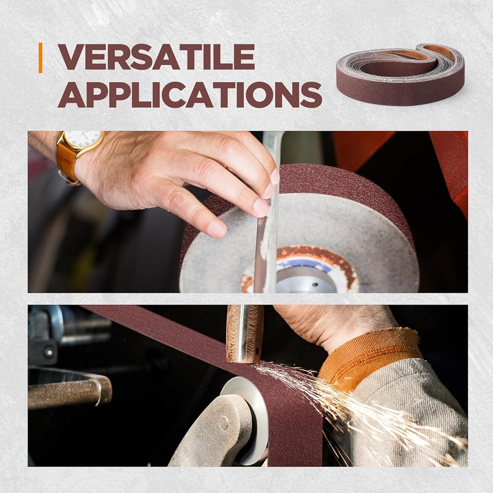 Wide Range of Application: these sanding belts 2x72 are suitable for a variety of surfaces including wood, aluminum, colored metals, glass, plastic, and stone; With a good functionality over narrow corners and odd shapes, the grinding belt caters well to steel, stainless steel, cast iron, carbon steel, and more; It is ideal for polishing, grinding, and precision operations
