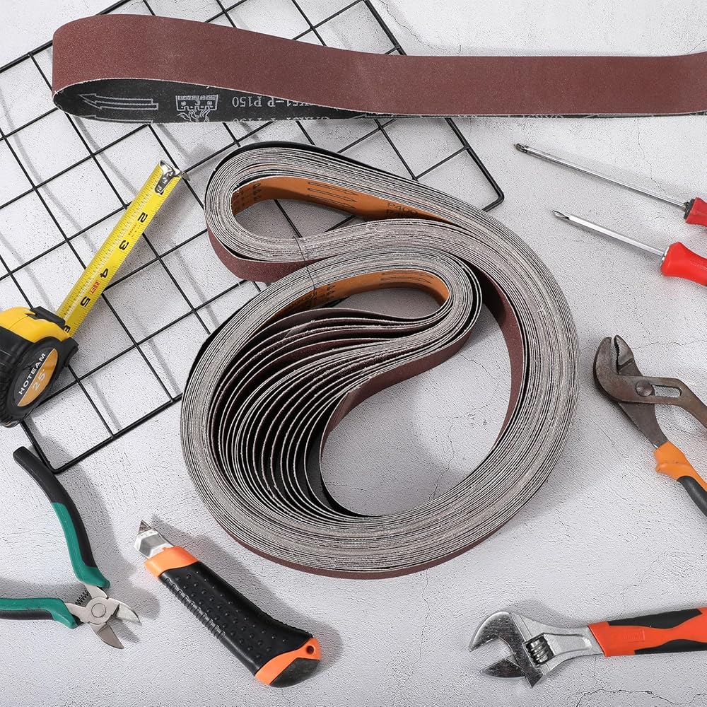 Sanding Belts with Assorted Grits: including 20 pcs of 2x72 sanding belts (4 x 80 grits, 4 x 120 grits, 4 x 150 grits, 4 x 240 grits, and 4 x 400 grits); Such an assortment caters to your various sanding requirements both for refined and rough surfaces