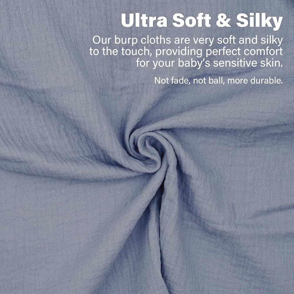 Large Thickened Design:Our cotton muslin baby burp cloths are large enough, each one is 20x10 inches long, and the thickness is a little thicker than the average burp cloth about 0.2 inches, which can be used to cover the shoulders of adults, so that the baby's vomit will not easily get on the parents' bodies.
