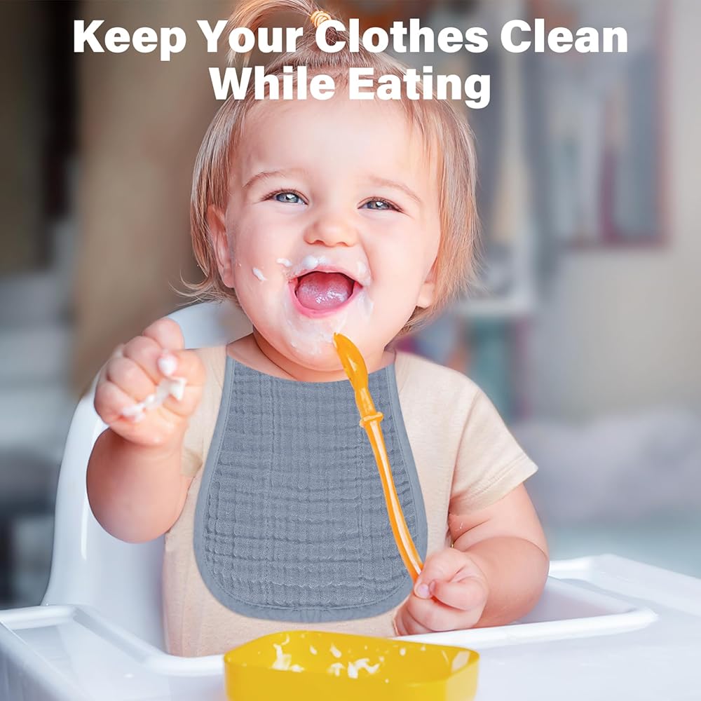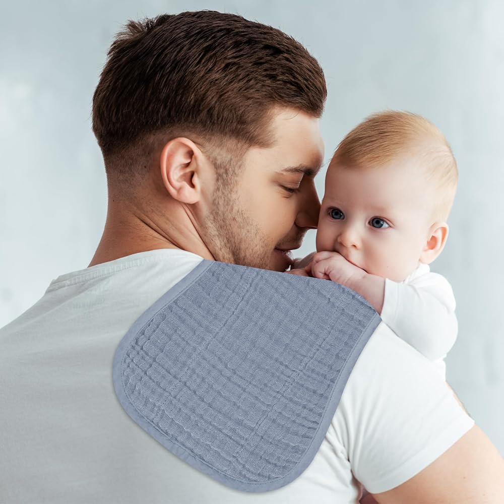 Super Absorbent & Soft Texture:100% cotton material, super absorbent, mothers do not have to worry about the baby will vomit and stain the clothes, can completely absorb waste liquid, muslin material is also very breathable and soft, skin-friendly, very suitable for baby's delicate and sensitive skin.