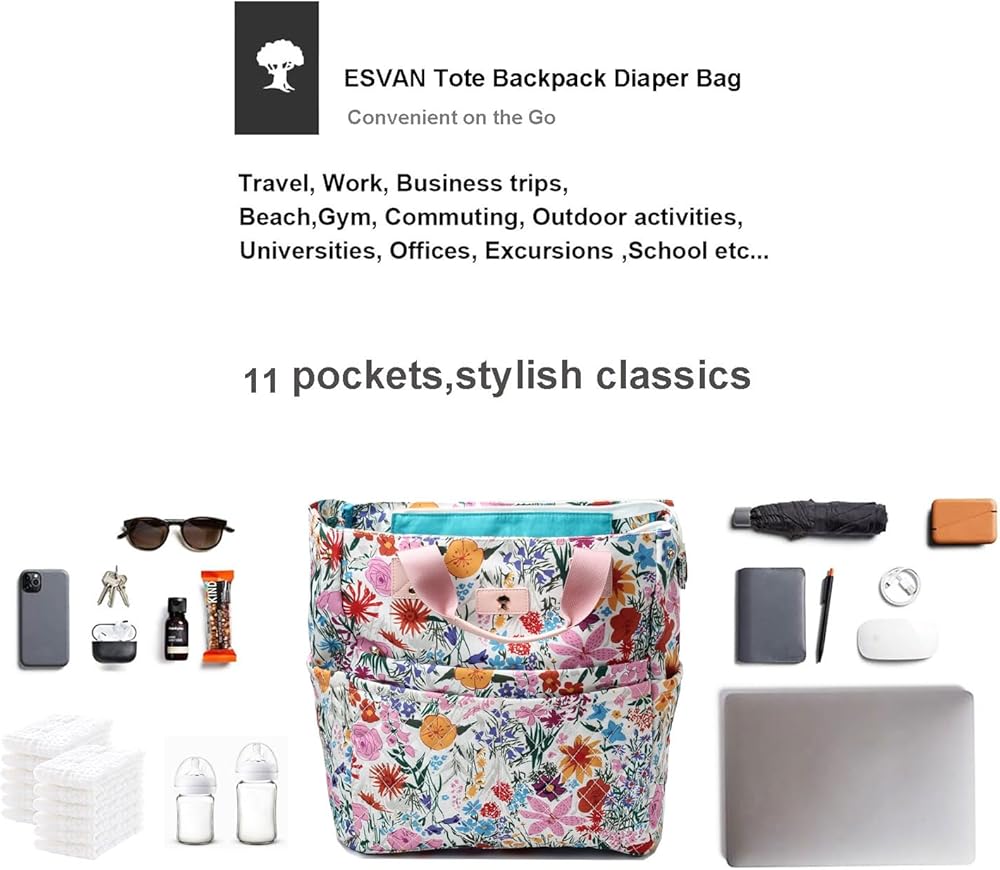 ESVAN Diaper Tote Bag Laptop Backpack: Your Ultimate Everyday Companion Features: