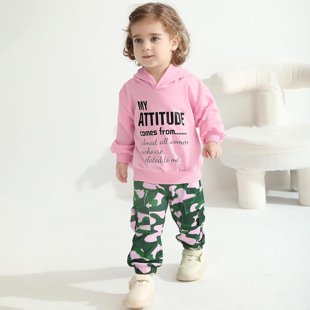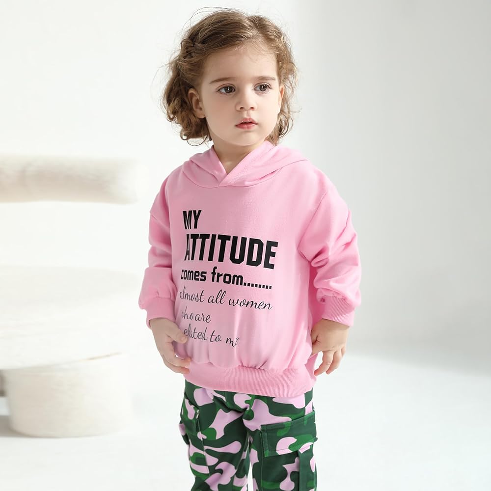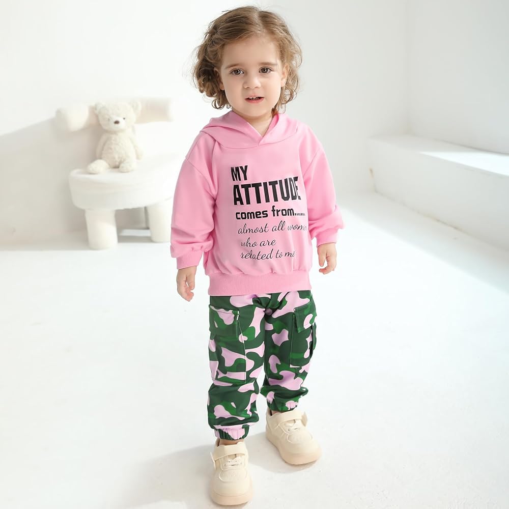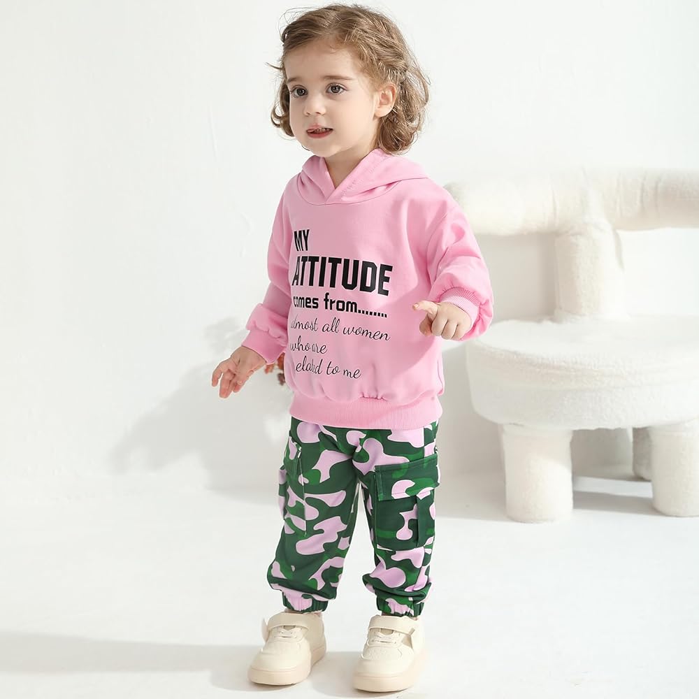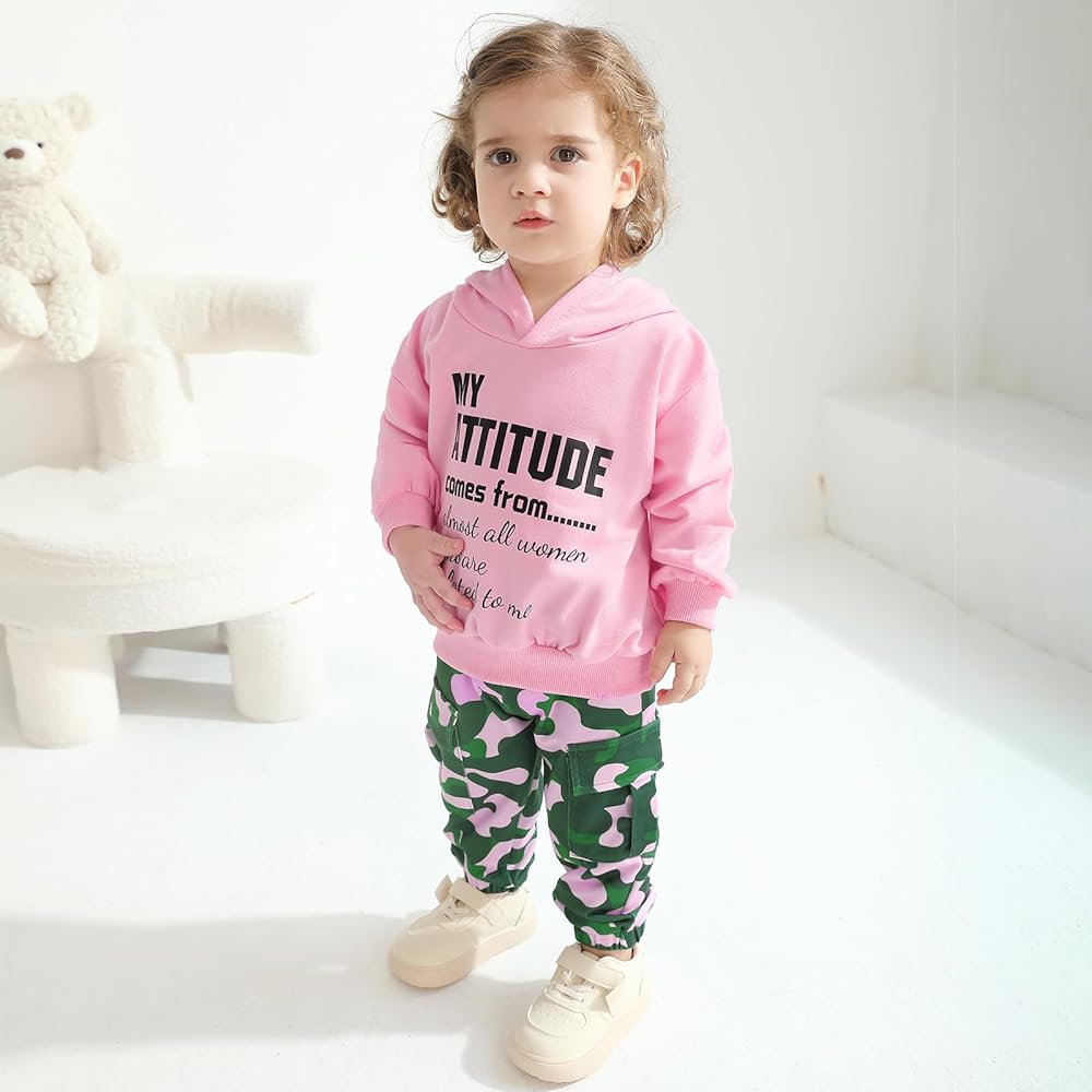 Design:Toddler boys girl clothes features fashion letter printed,crew neck,long sleeve,pullover,hoodie sweatshirt top,matching,elastic waist camouflage cargo pants with pockets,cute and lovely.