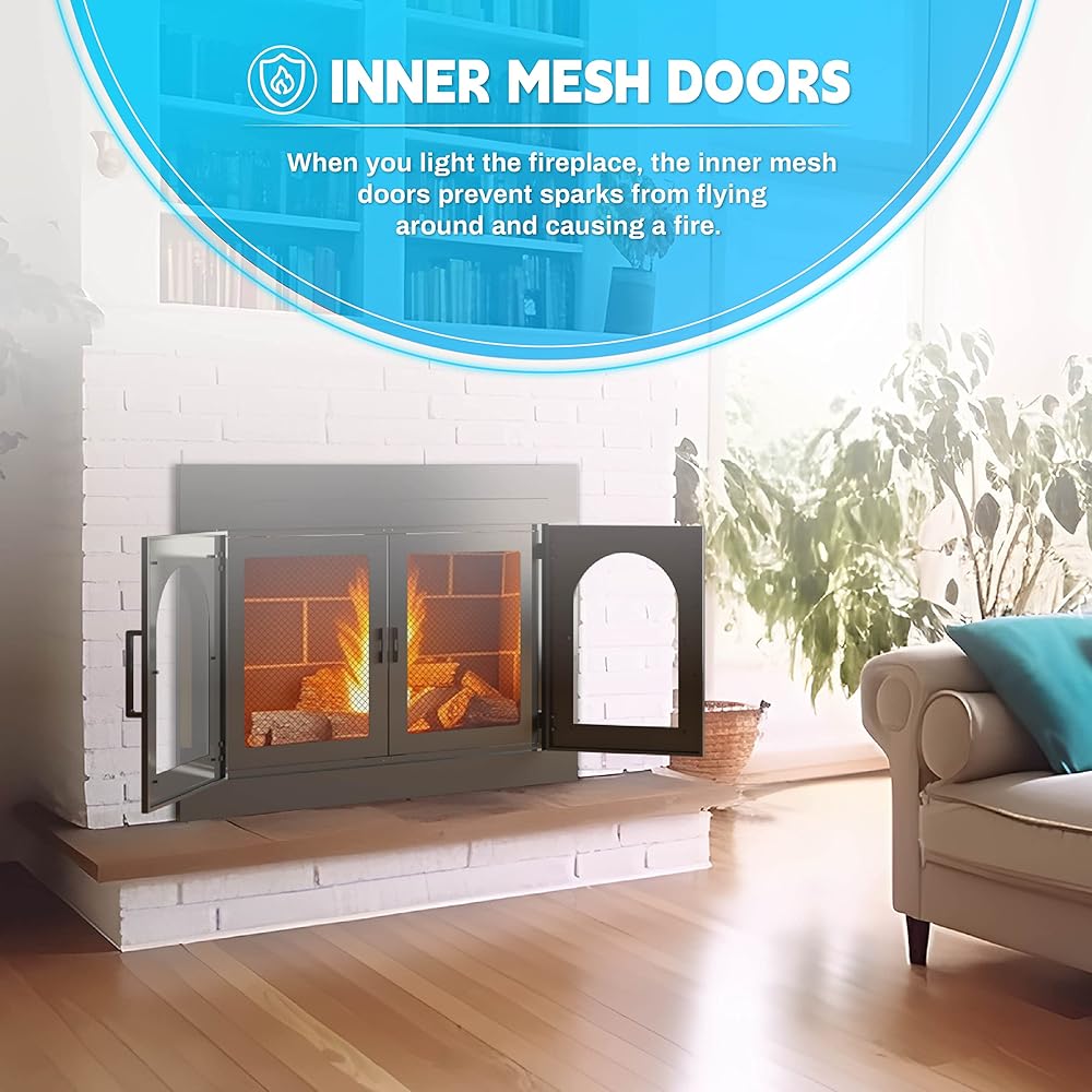 『DOUBLE PROTECTION DOOR』When the fire is lit, the inner mesh doors prevent sparks from flying around and causing fire. When the fire is out, the glass door does a great job of keeping the heat in the fireplace and preventing the smell of smoke from entering the room.