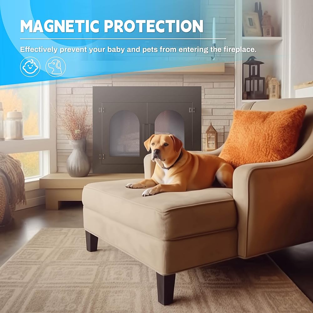『CONVENIENT MAGNETIC ATTRACTION』Each door have strong magnets, which can remain magnetic even when approaching high temperatures. Magnetic latches on each screen mesh door and glass door allow for easy opening and closing, effectively prevent your baby and pets from entering the fireplace.