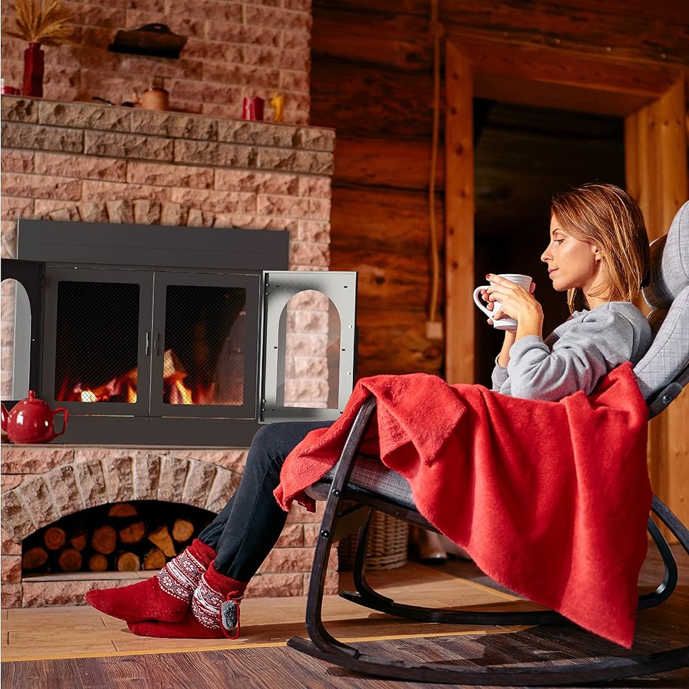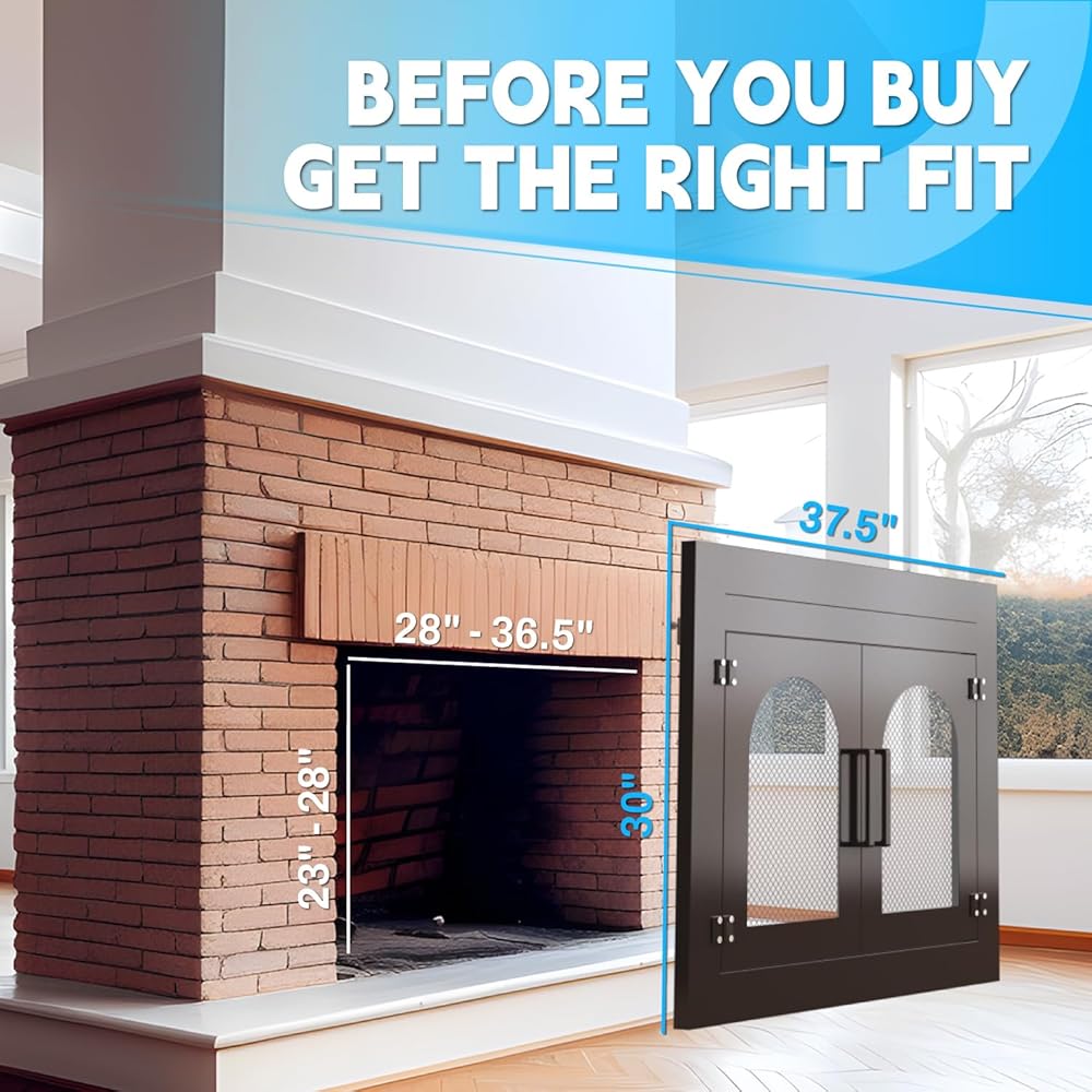 Fireplace Glass Door 37.5x30'' Fireplace Screen with Doors Mesh Fire Place Doors Fire Spark Guard Magnetic Doors Black Masonry Fireplace Fits Openings W 28-36.5'', H 23-28''