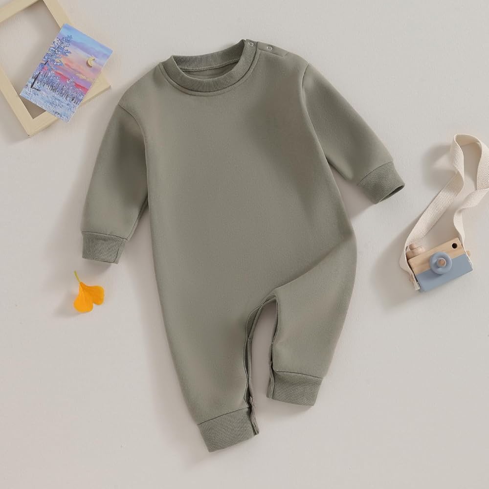 Design: Newborn baby boy girl fall winter outfit, baby fleece romper, baby fleece long sleeve jumpsuit, solid color baby boy girl romper, solid color baby jumpsuit, neutral baby boy girl clothes fall winter, basic but classic,never out of fashion