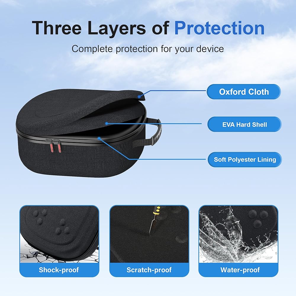 Sturdy and Secure: The hard shell case for Quest 3S/Quest 3/Vision Pro made of premium durable material, built-in fixed elastic band can securely fix your device, prevent them from shaking and bumps, make your storage more secure.
