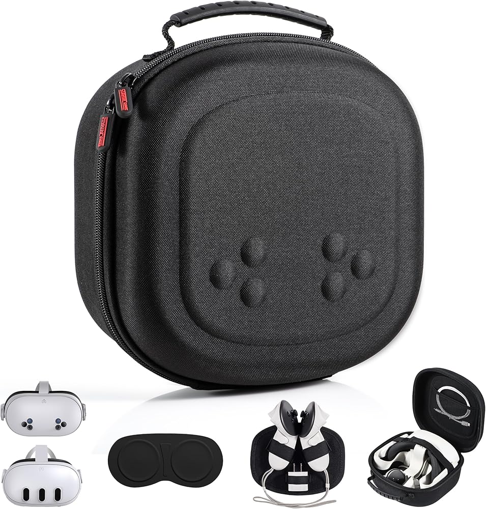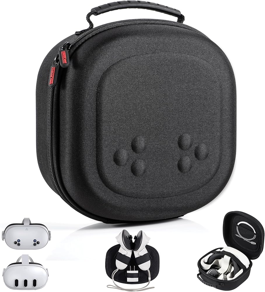 Carrying Case for Meta Quest 3S/Quest3/Vision Pro: The hard carrying case is specially designed for Meta Quest 3S/Quest 3/Vision Pro, unique appearance tailored for your new Quest 3S. (NOT for elite strap or any other 3rd-party head strap.)