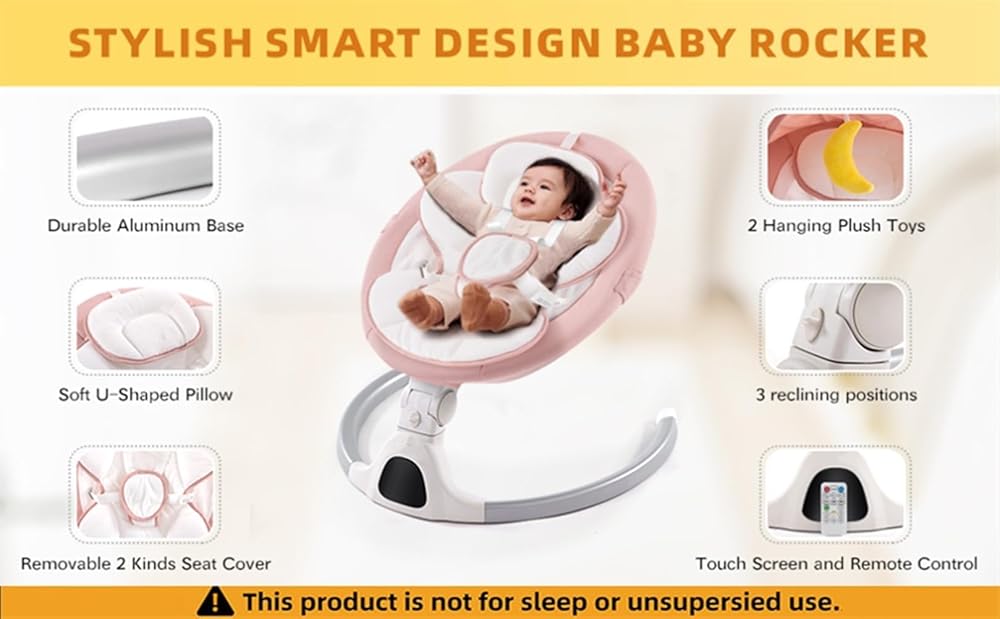 Easy control:Operating the Noormiex is very easy,you can use touch panel or remote control,besides standard AC adapter,the baby swing can be powered with batteries to allow for convenient portability.