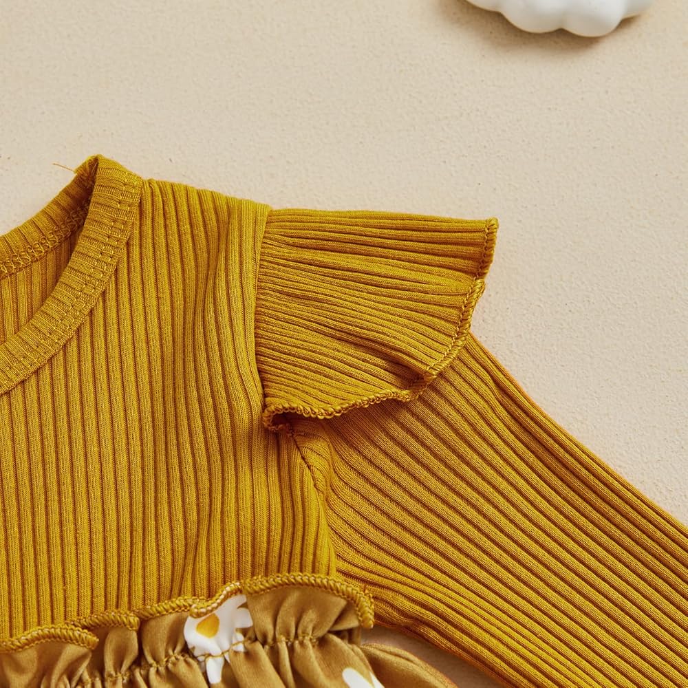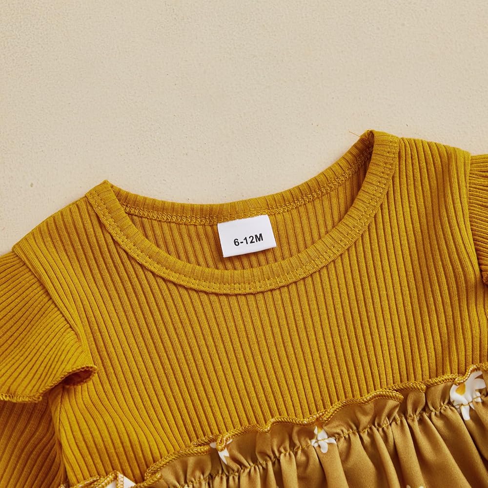 fhutpw Baby Toddler Girl Dress Fall Knitted Long Sleeves Casual Daisy Dresses for Girls 6 12 18 Months 2T 3T Outfits