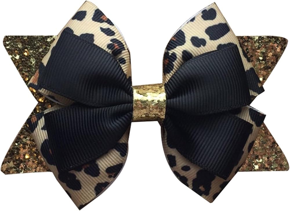 Glitter Leopard Hair Bow Clips for Girls Women Leopard Bow hairpin Hair Accessories.(FJ119)