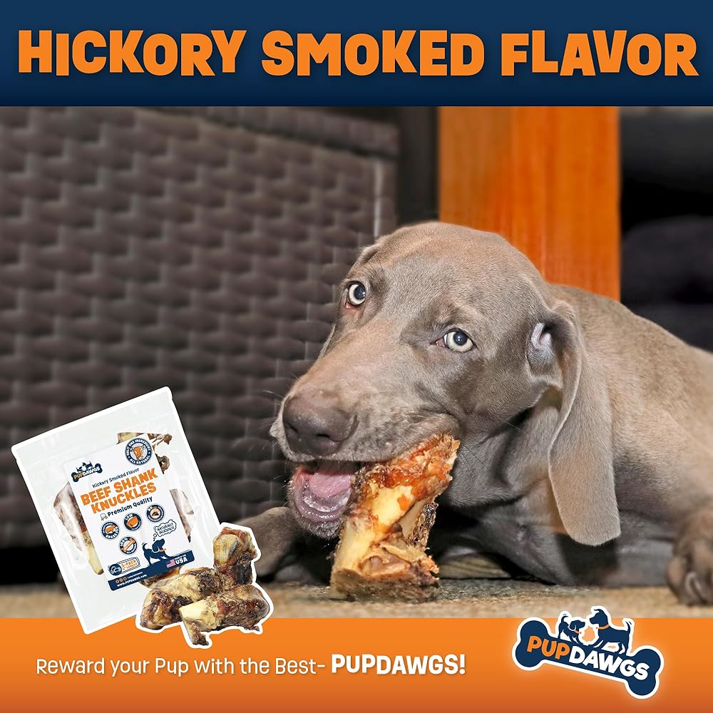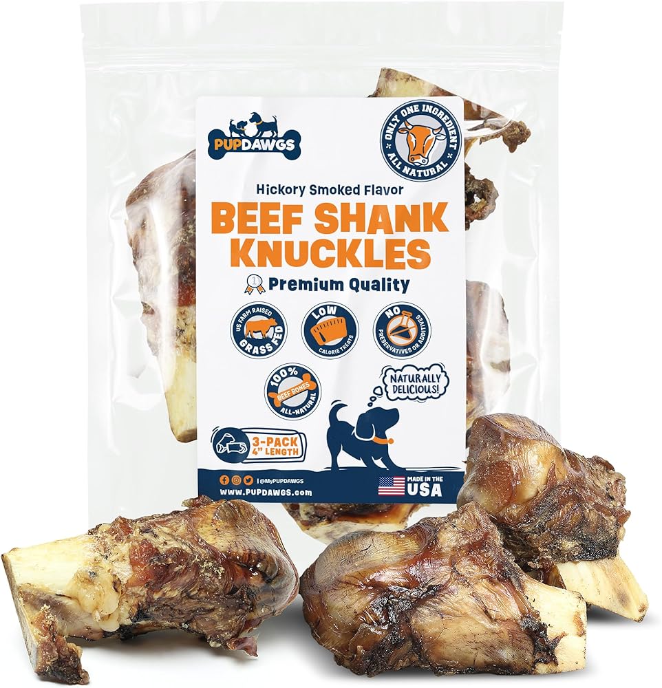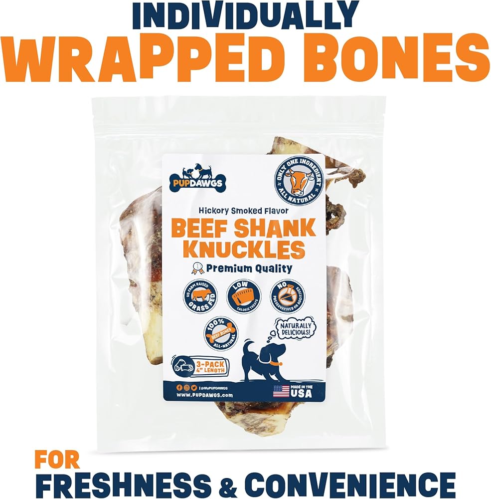 Dog-Bones-for-Aggressive-Chewers | Hickory Smoked Flavor 4" Beef Shank Knuckles | Dog-Bones-for-Medium-Dog | All Natural Dog Bone Treats Made in The USA - Individually Wrapped (3 Piece Pack)