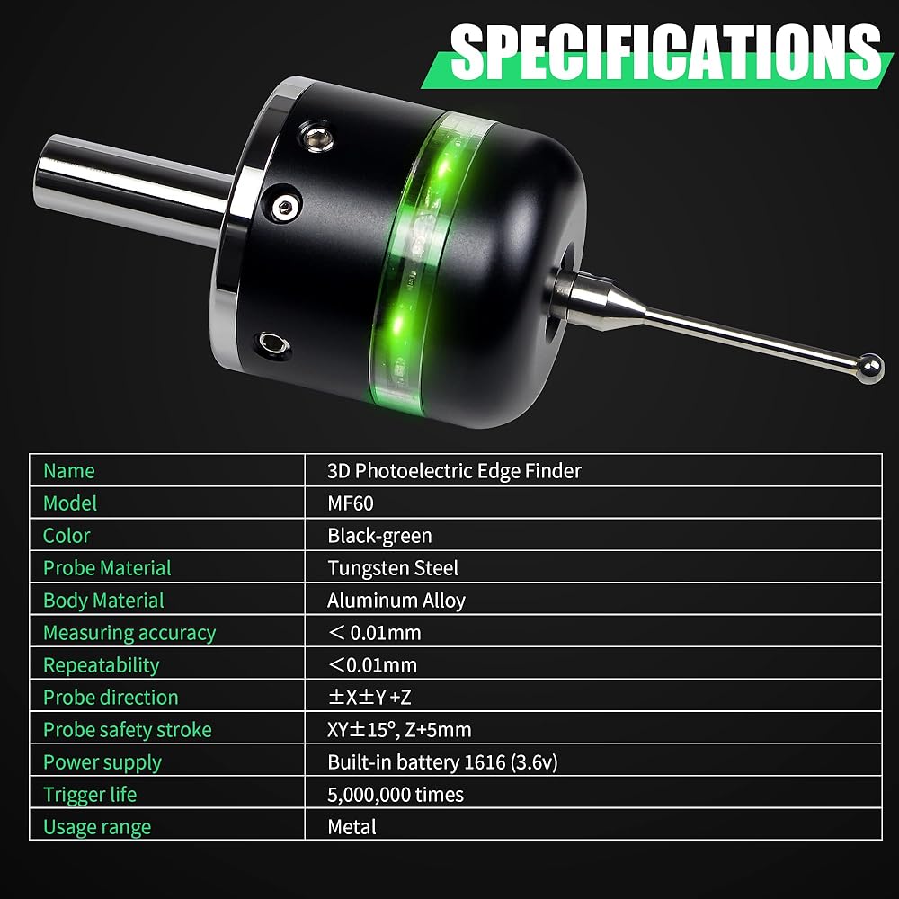 【Package included】1x MF60 3D Edge Finder (Grey Black Color/Green Light)