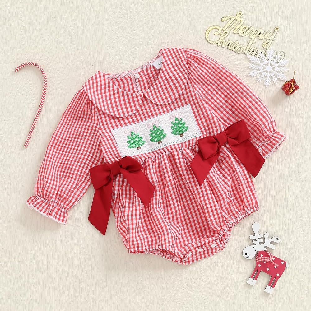 Premium Fabrics: Christmas baby girl clothes,Made of 95% cotton and 5% polyester; Baby girl long sleeve romper is not only soft and skin-friendly but also durable and easy to care for, which can be worn all day long
