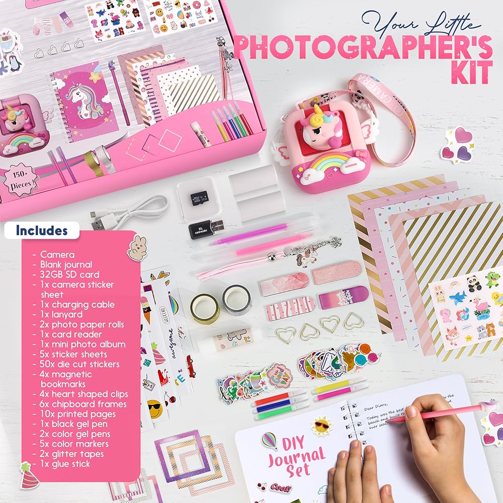 Photomaker Kit - Instant Print Camera for Kids Plus DIY Journal Kit for Girls - 150 Pcs Tween Journal & Camera for Girls - 6 7 8 9 10 11 12 13 14 Year Old Girl (Unicorn)