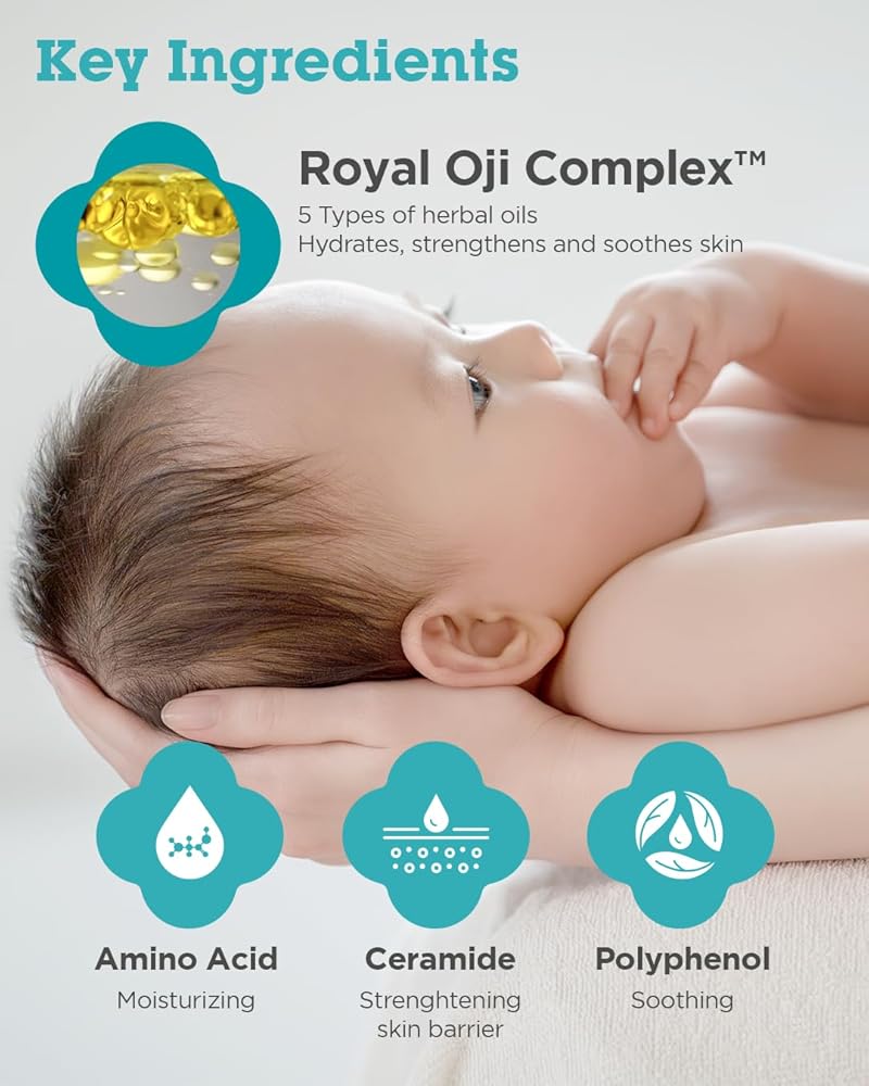 Nurturing Ingredients for Delicate Skin: Trust in the carefully selected, nurturing ingredients found in both the shampoo and lotion. Infused with soothing oat kernel extract, macadamia ternifolia seed oil, and wheat extract, these products not only cleanse and hydrate but also help fortify your baby's skin against dryness and irritation, making them perfect for daily use.