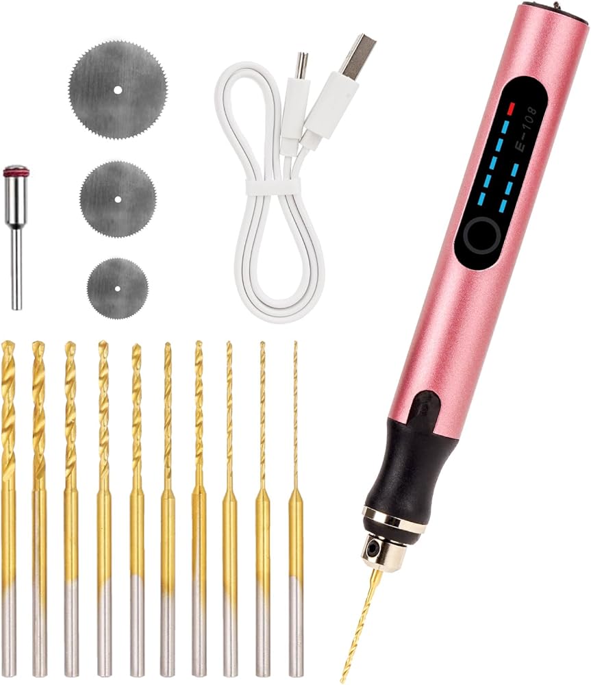 -Mini drill sculpting or decorating various surfaces, including plastic, wood, leather, glass, ceramic, stone, resin, keychains, etc.