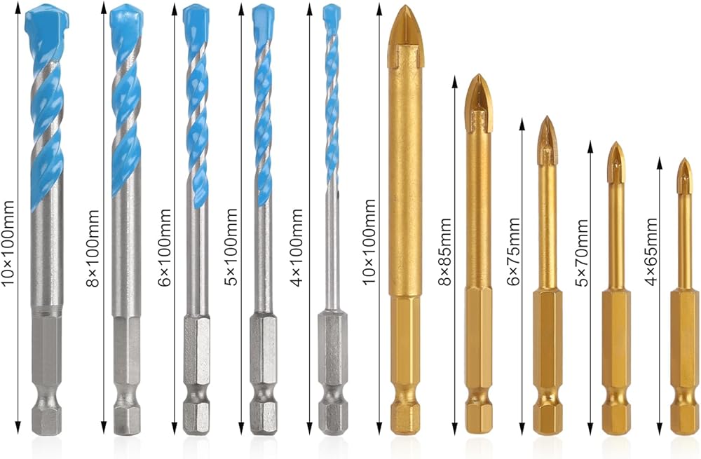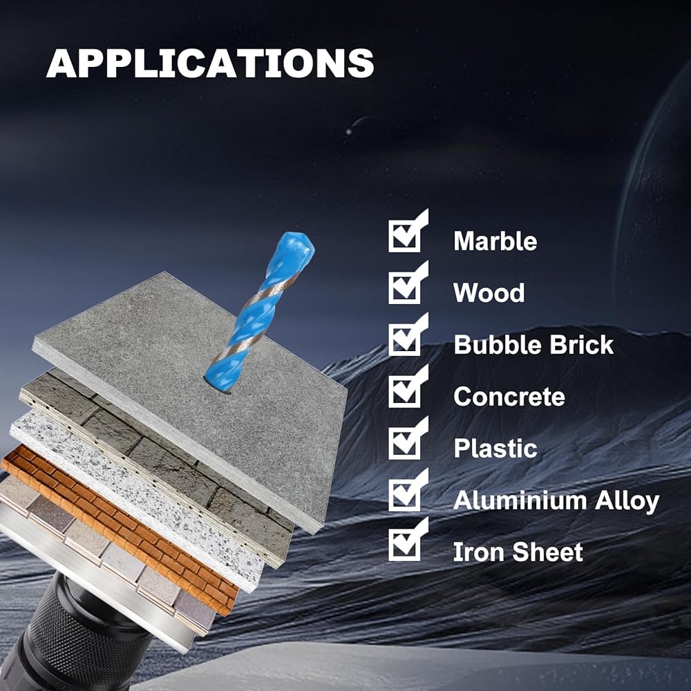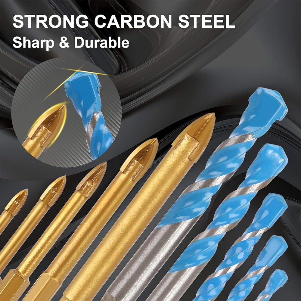 Wide Application: This masonry drill bit set is perfect for drilling into glass, ceramics, tiles, mirrors, flower pots, wood, porcelain, brick, marble, and thin metal sheets. To extend bit life, keep the drill bit vertical and cool it with water. Avoid drilling into rebar.