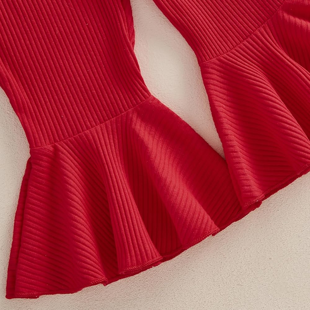 Design:Toddler girl bell bottom outfit, bow or gingerbread man print, long sleeve crew neck sweatshirt pullover, match with elastic waist solid ribbed flare pants and bow headband, classic Christmas element print, the colorful design will make your child's face smile
