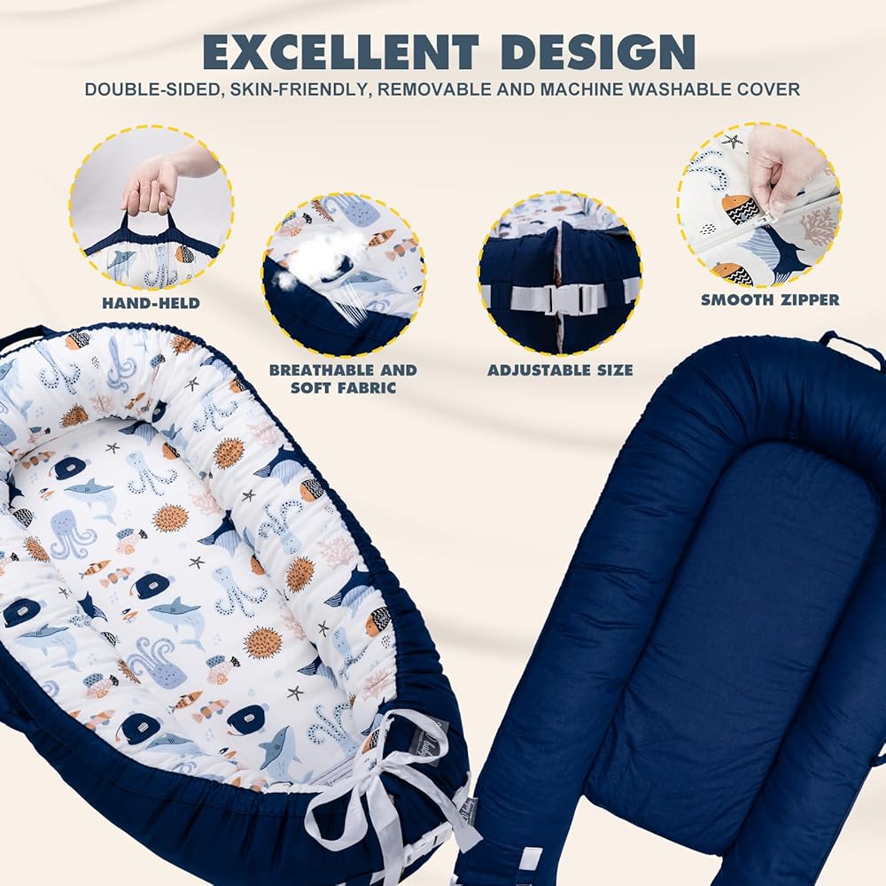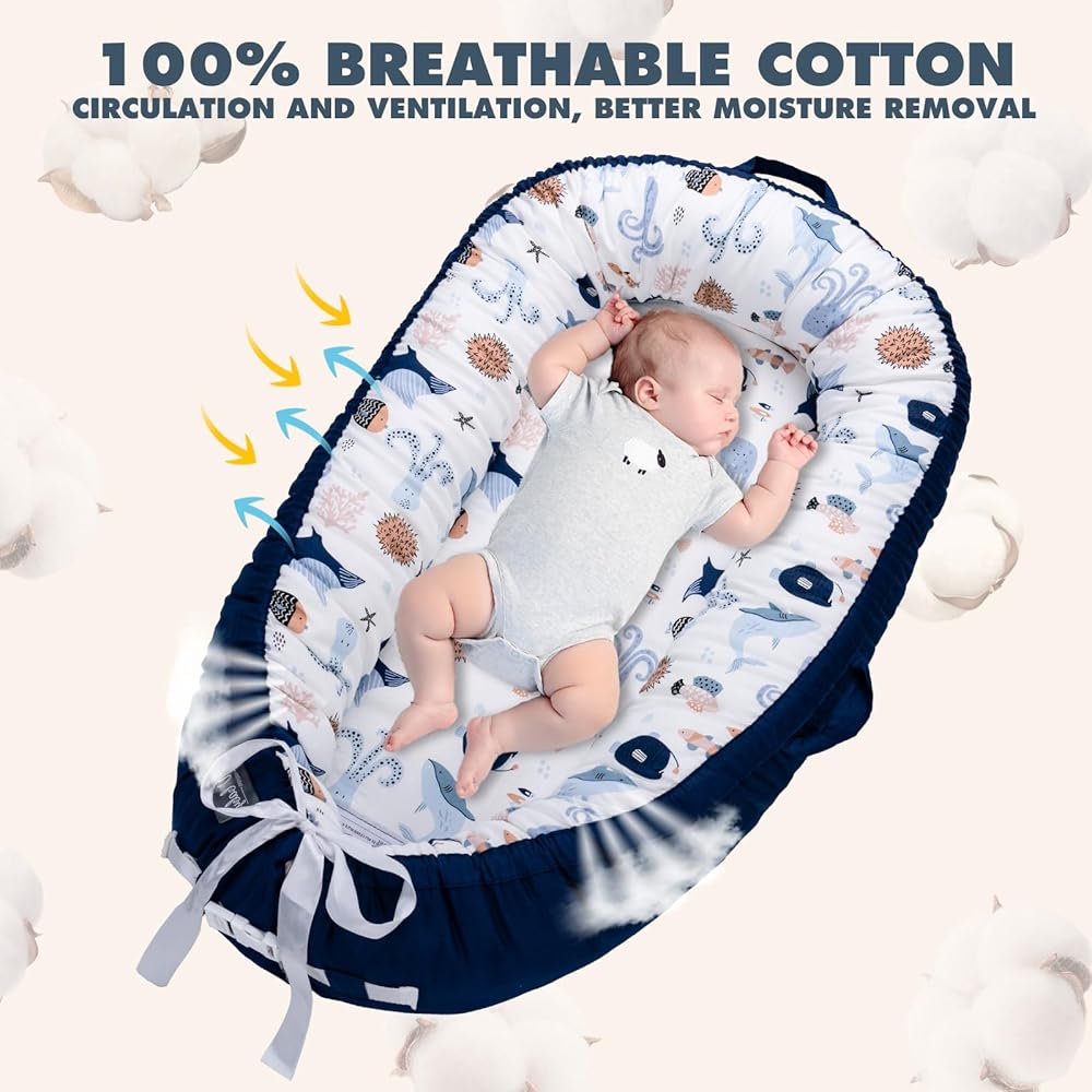 🎄【100% breathable cotton, baby's comfort guarantee】 XZV baby nest uses 100% breathable cotton fabric, which has excellent breathability, can effectively maintain air circulation, reduce moisture accumulation, and ensure that the baby can stay dry and comfortable in any season. The gentle cotton touch provides all-weather intimate care for the baby, allowing the baby to enjoy a comfortable and safe sleeping environment in the nest.