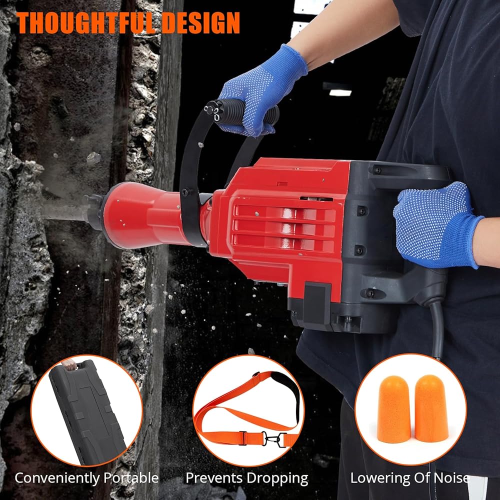 VERSATILE APPLICATIONS: Perfect for both professional and home use, this jack hammer concrete breaker is ideal for demolition, trenching, and breaking holes in concrete, masonry, and brick, offering unmatched versatility and reliability