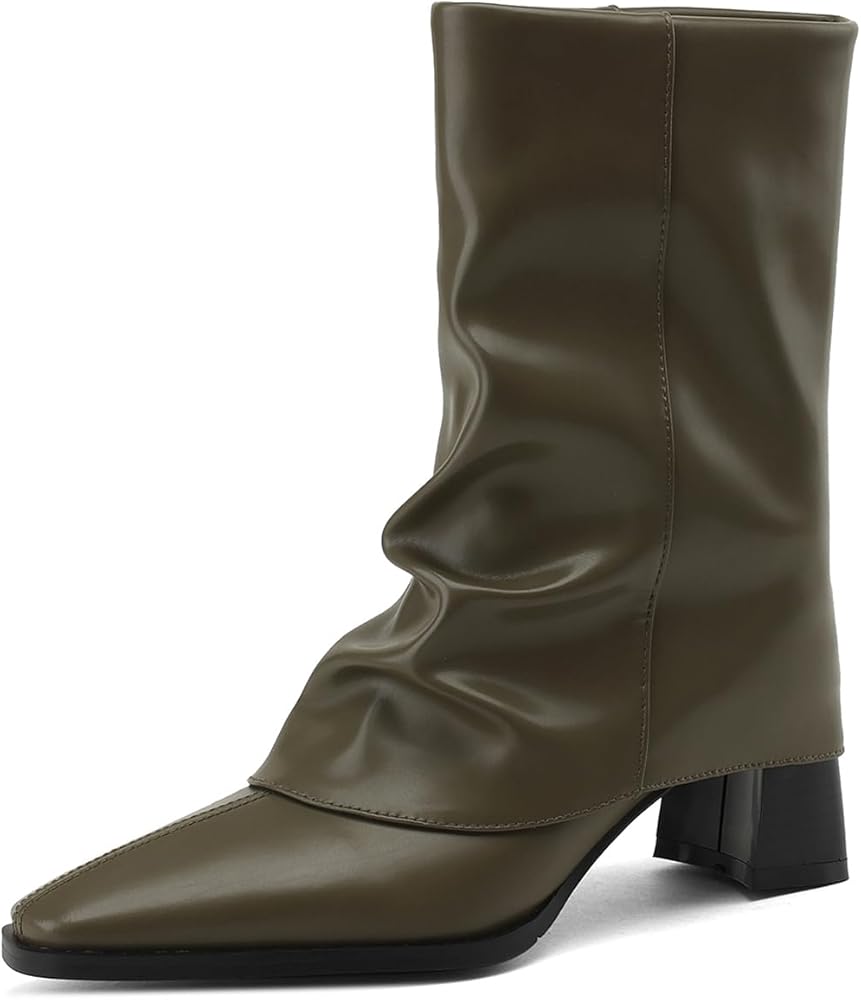- Mid calf boots are designed with genuine leather, block heel, square toe and zpull on closure to keep up with fashion trend