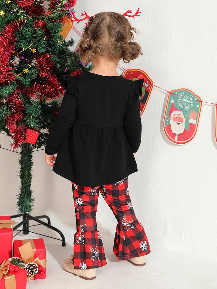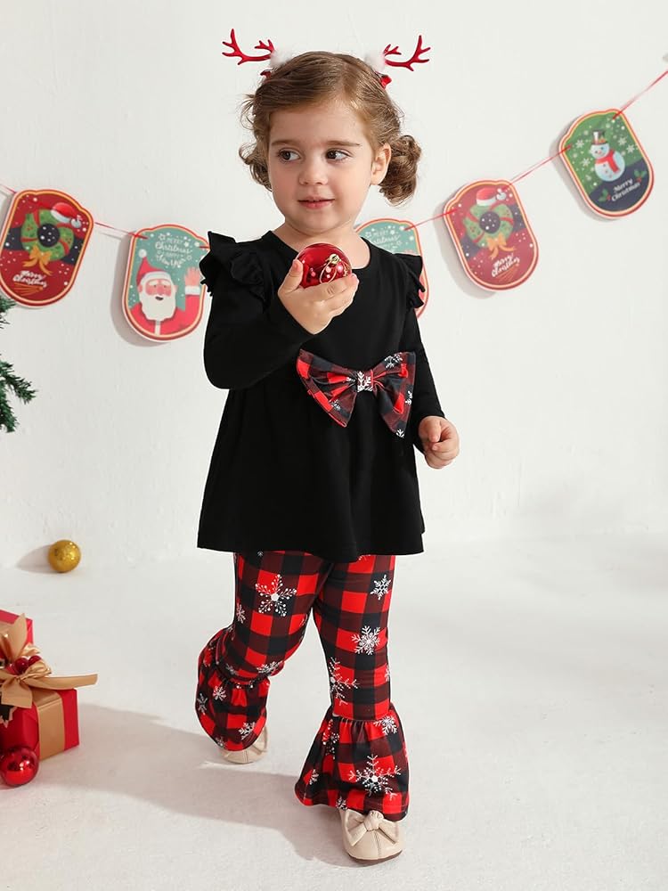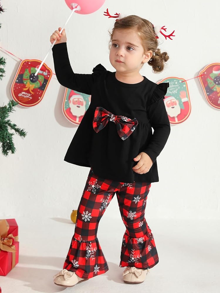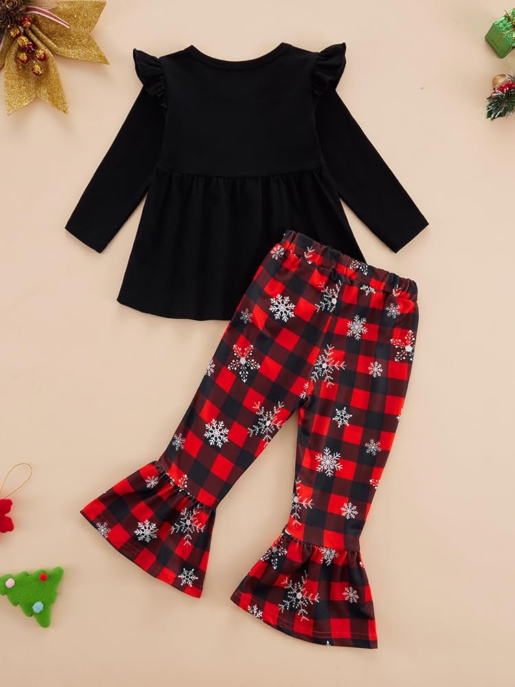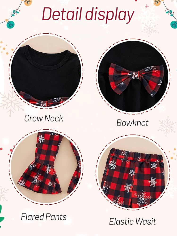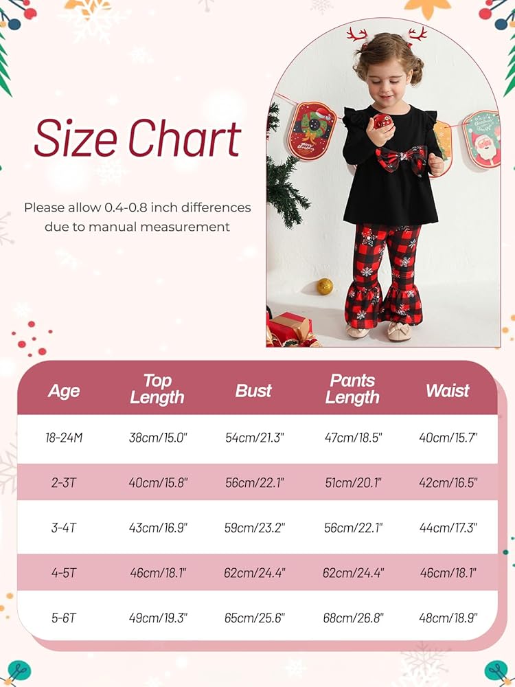 Size: Christmas clothes for girls , toddler girls flared pants set are suitable for girls 18-24M, 2-3T, 3-4T, 4-5T, 5-6T. In order to choose the most suitable Christmas clothes for your baby, please refer to the product size chart before purchasing.