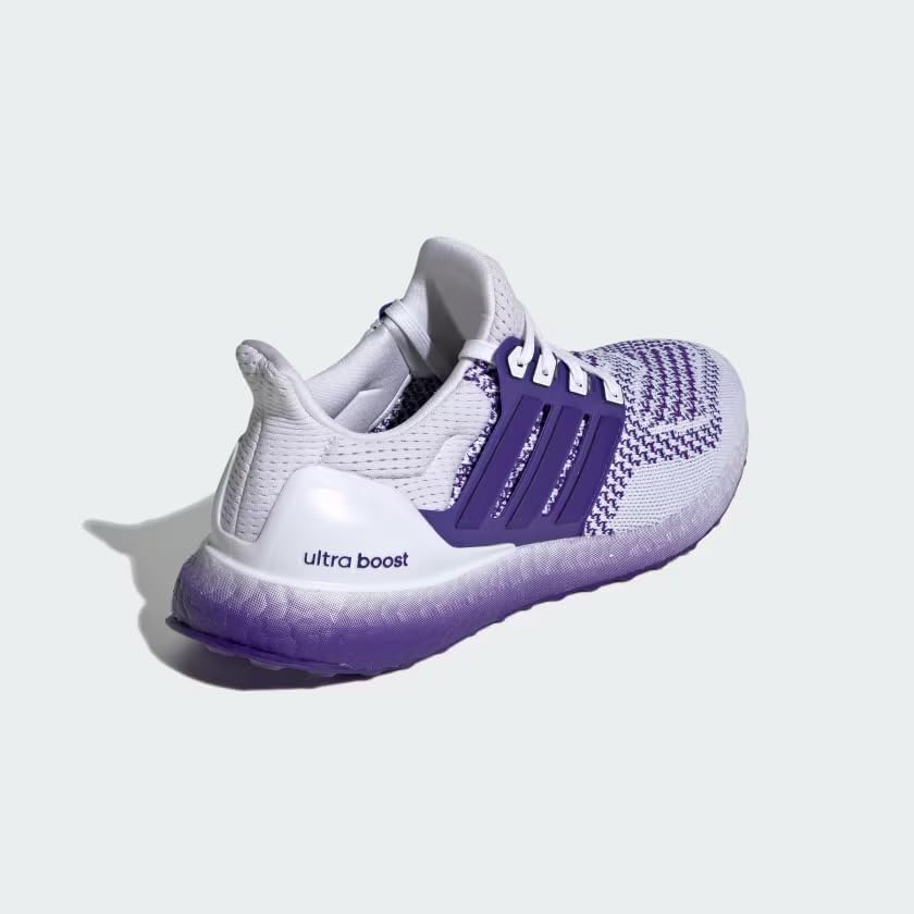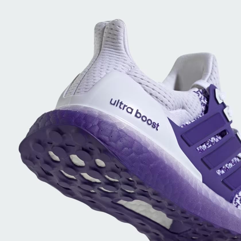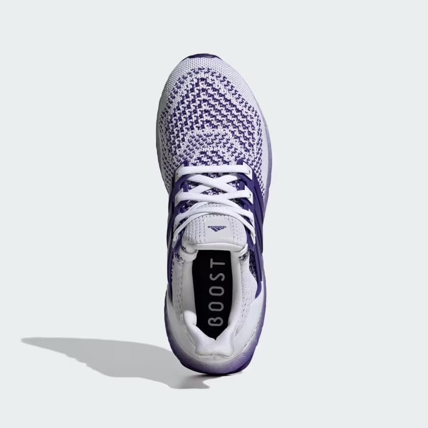 ENERGY-RETURNING SNEAKERS MADE IN PART WITH PARLEY OCEAN PLASTIC. From a walk in the park to a weekend run with friends, these adidas Ultraboost 1.0 shoes are designed to keep you comfortable. An adidas PRIMEKNIT upper gently hugs your feet, and BOOST on the midsole cushions from the first step to the last mile. The Stretchweb outsole flexes naturally for an energized ride while Continental Rubber gives you the traction you need to keep that pep in your step. Lace closure adidas PRIMEKNIT textile upper Fitcounter molded heel counter BOOST midsole Stretchweb outsole with Continental Rubber Yarn in upper contains at least 50% Parley Ocean Plastic and 50% recycled polyester Imported Product color: Cloud White / Energy Ink / Collegiate Purple Product code: IH7313
