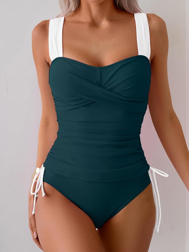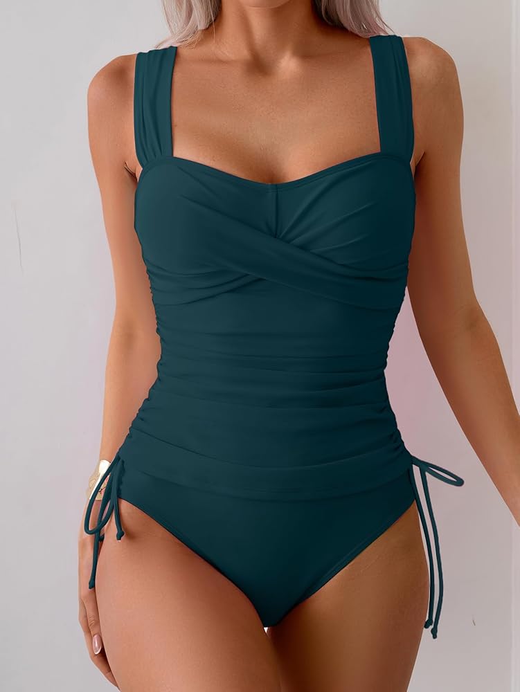Tummy Control Design: This drawstring swim tank top provides excellent tummy control with its ruched design, effectively hiding any tummy bulges, and creating a slimming and flattering look