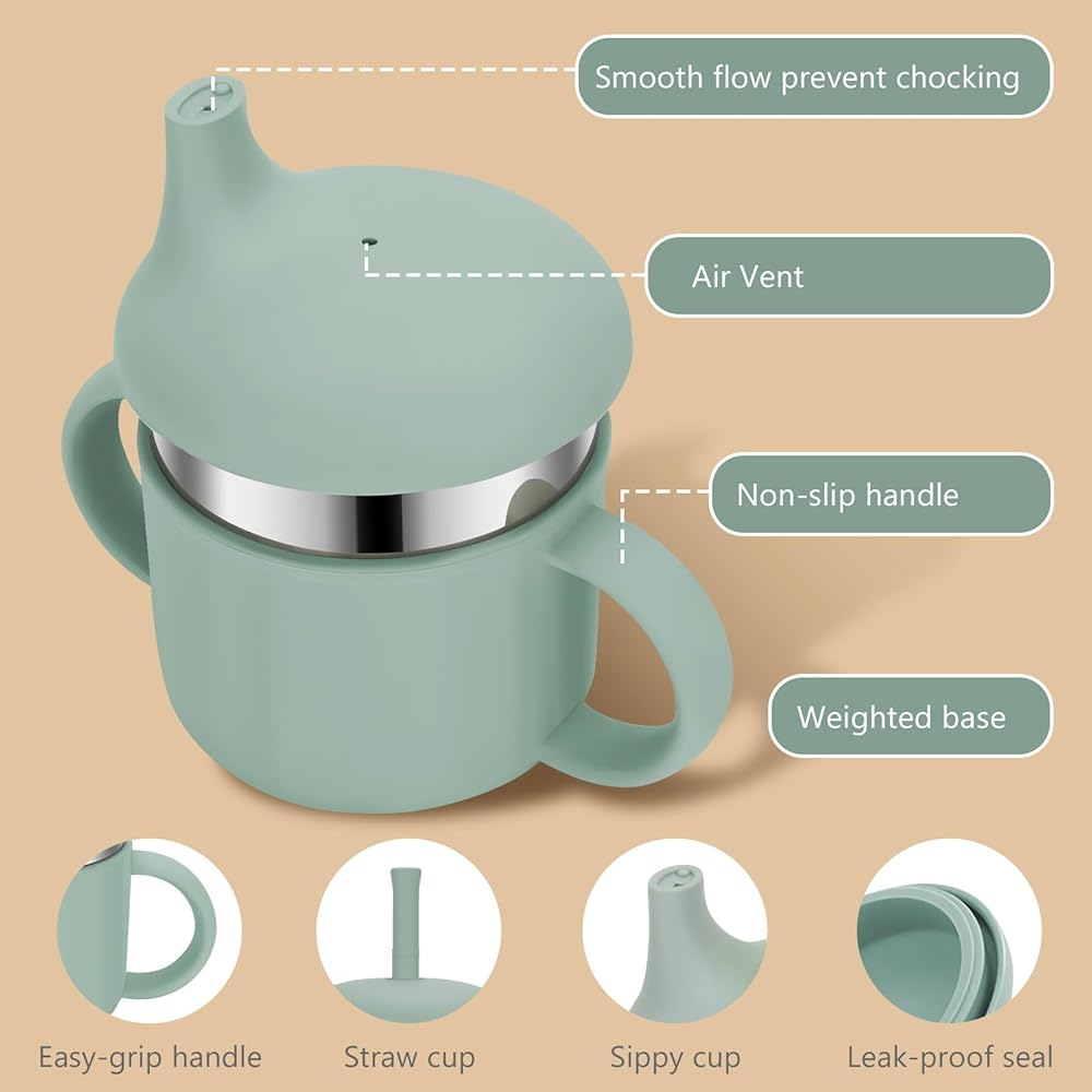 ✅ Silicone Baby Cups With Straws and Lids- Our baby cup come with straw and lid, the silicone cup lid fit tightly with the cup, even your baby squeeze it the liquid won't spill, no worry about the mess, also, the handle design perfect for our toddlers little hands!