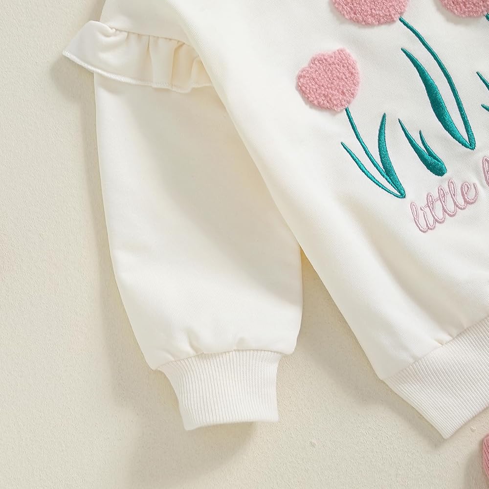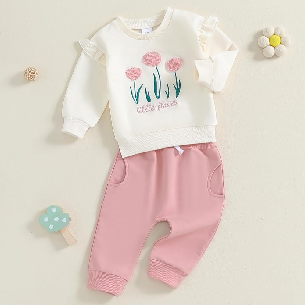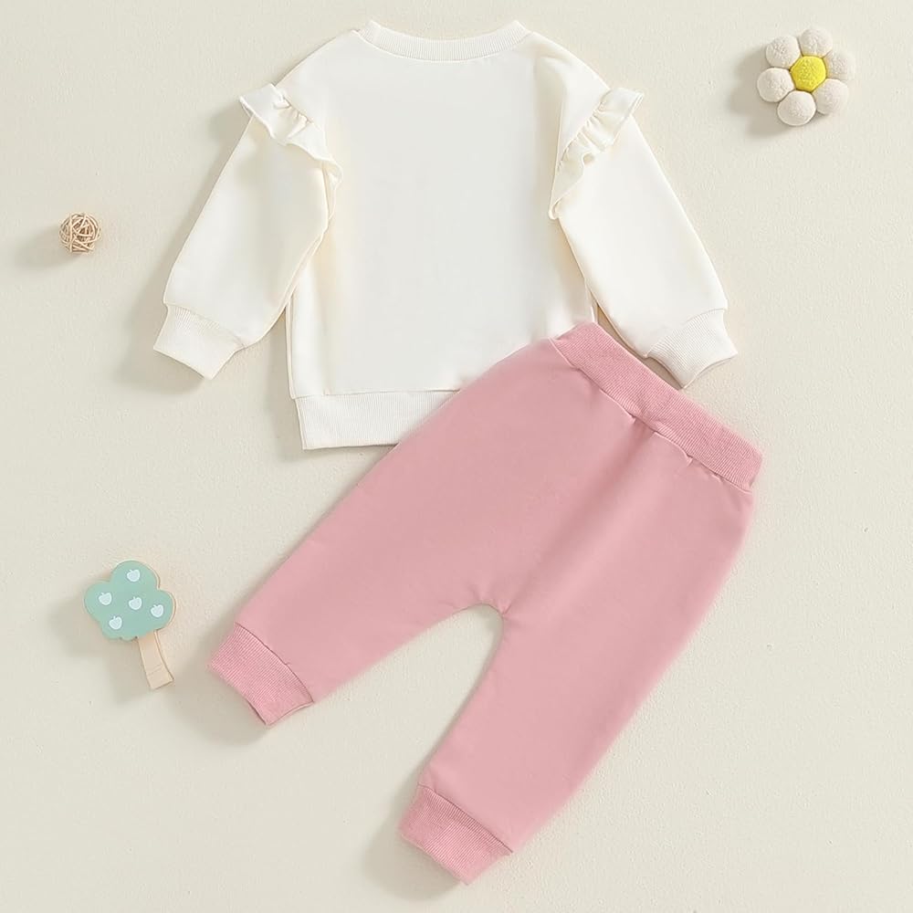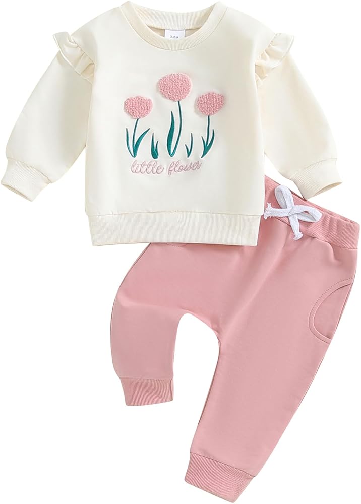 Ruffle Long Sleeve Sweatshirt + Pocket Sweatpant Outfit Sets, Cute Floral Daisy and Fruit Strawberry Print, Pullover Shirt Tops and Fashion Pant 2 Piece Fall Winter Outfits Clothes Clothing Set